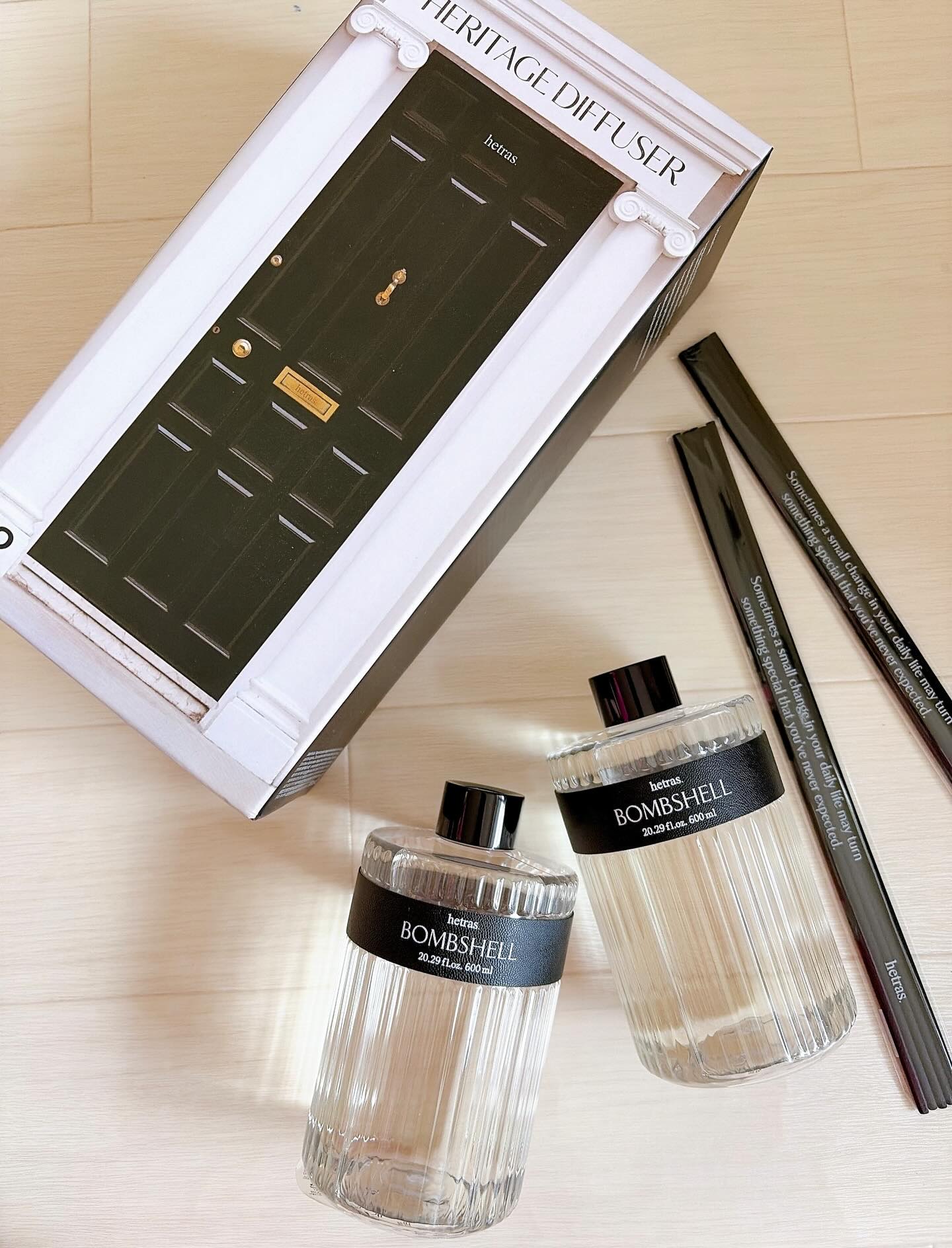 \2026年1月発売/hetras.(ヘトラス)「ヘリテージパフュームディフューザー」Bombshell(ボムシェル)の香りクリアボトルがスタイリッシュでおしゃれなデザインです✨️✨️シンプルだけど上品で、インテリアとしてもよく馴染みます🥰6...