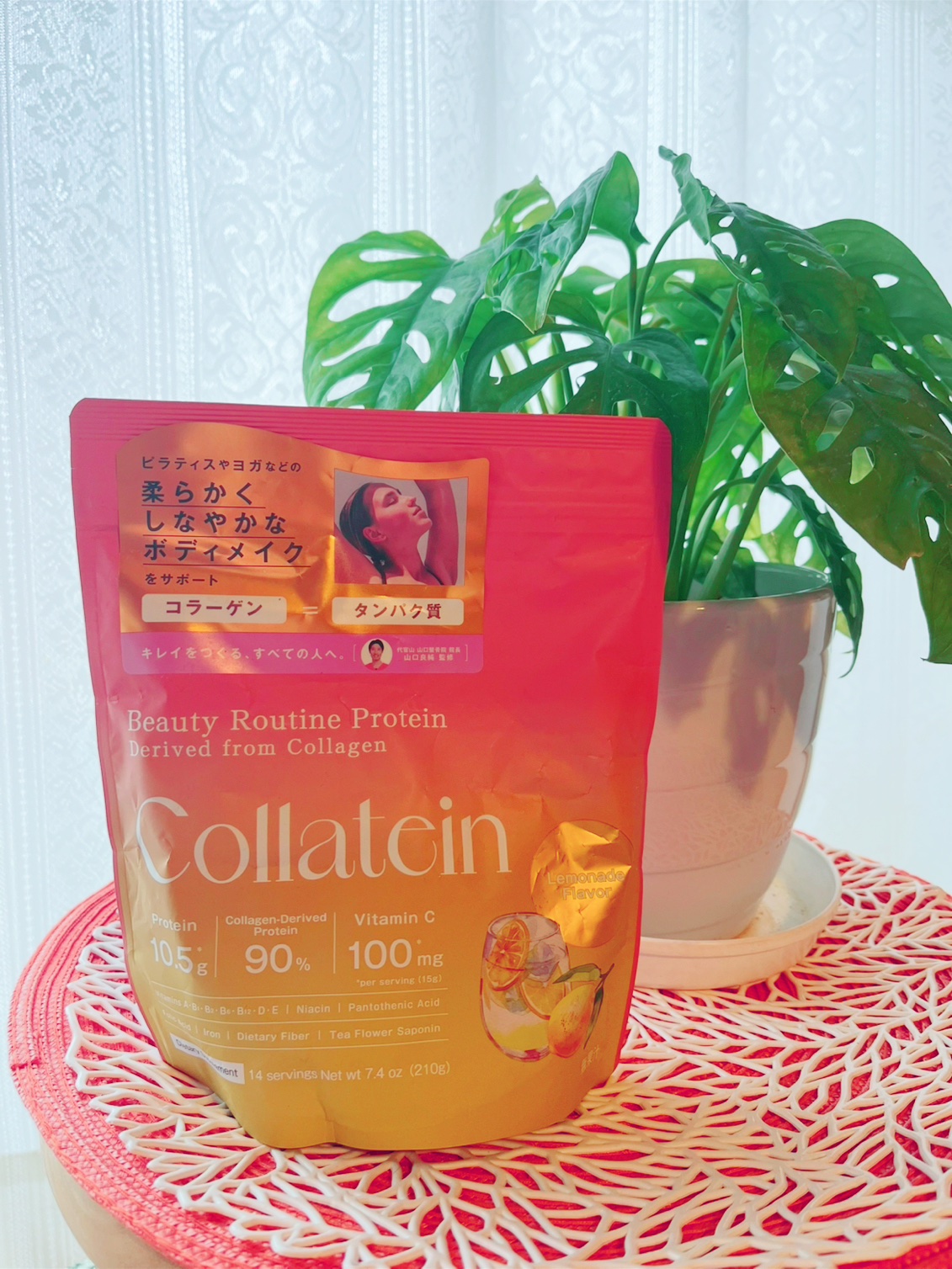- 1回分でタンパク質10.5g摂取 そのうち90%がコラーゲン由来 12種の栄養機能食品&9種のミネラル&3種の美容成分を配合 さらに人口着色料・保存料フリーな安心設計 1杯あたり53.70kcal コラーゲンベースのプロテインのため、サッと溶けてフルーツ系のサッパリとした味わいを楽しめる