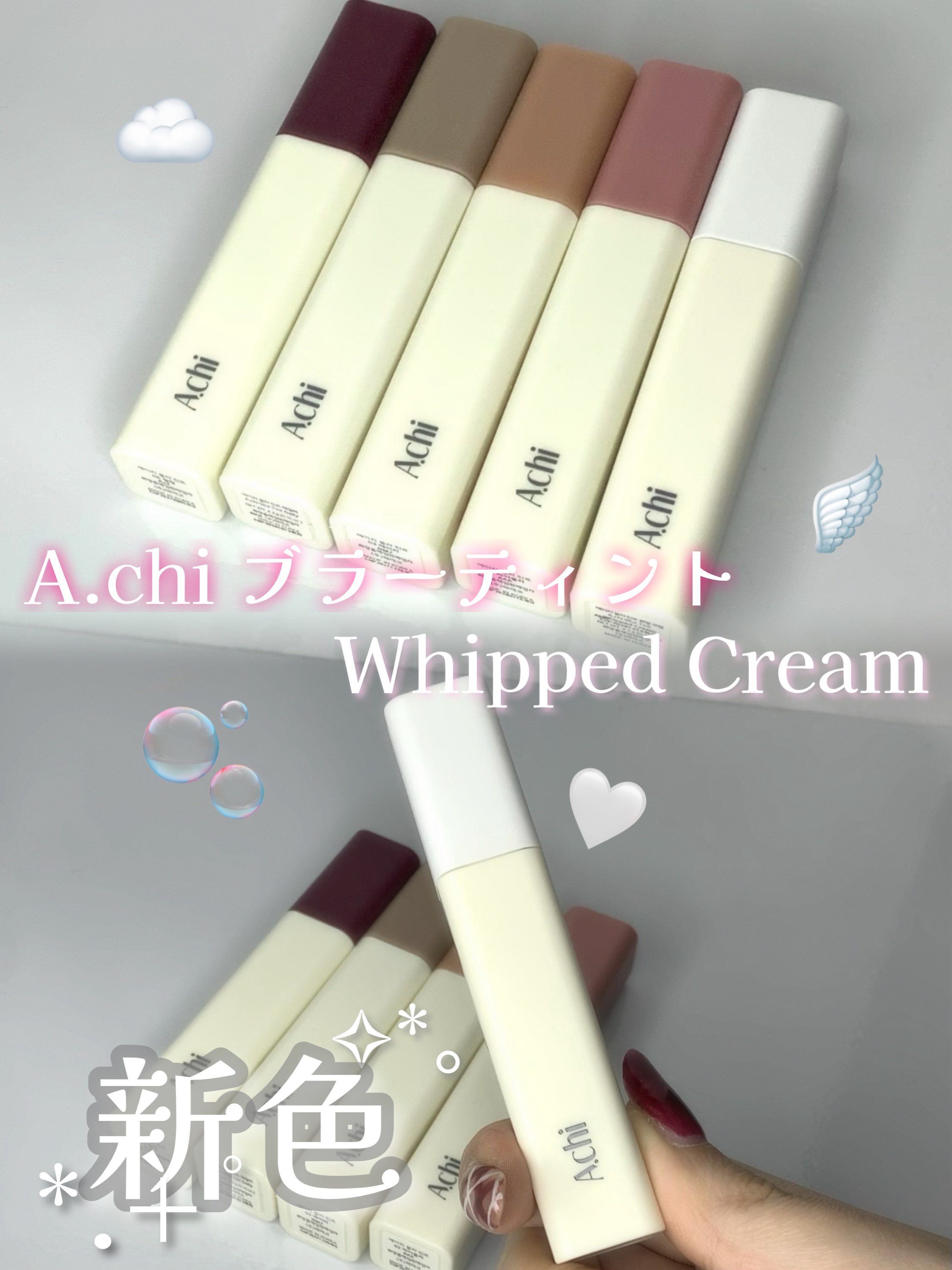 唇に魔法をかける白ティント誕生!A.chiのブラーティントから、新色WhippedCreamが登場💖このホワイトカラーが本当にすごいんです…!普段使いしにくい「主張の強いカラー」や、ちょっと飽きてきたリップに重ねるだけで、驚くほど柔らかな「パ...