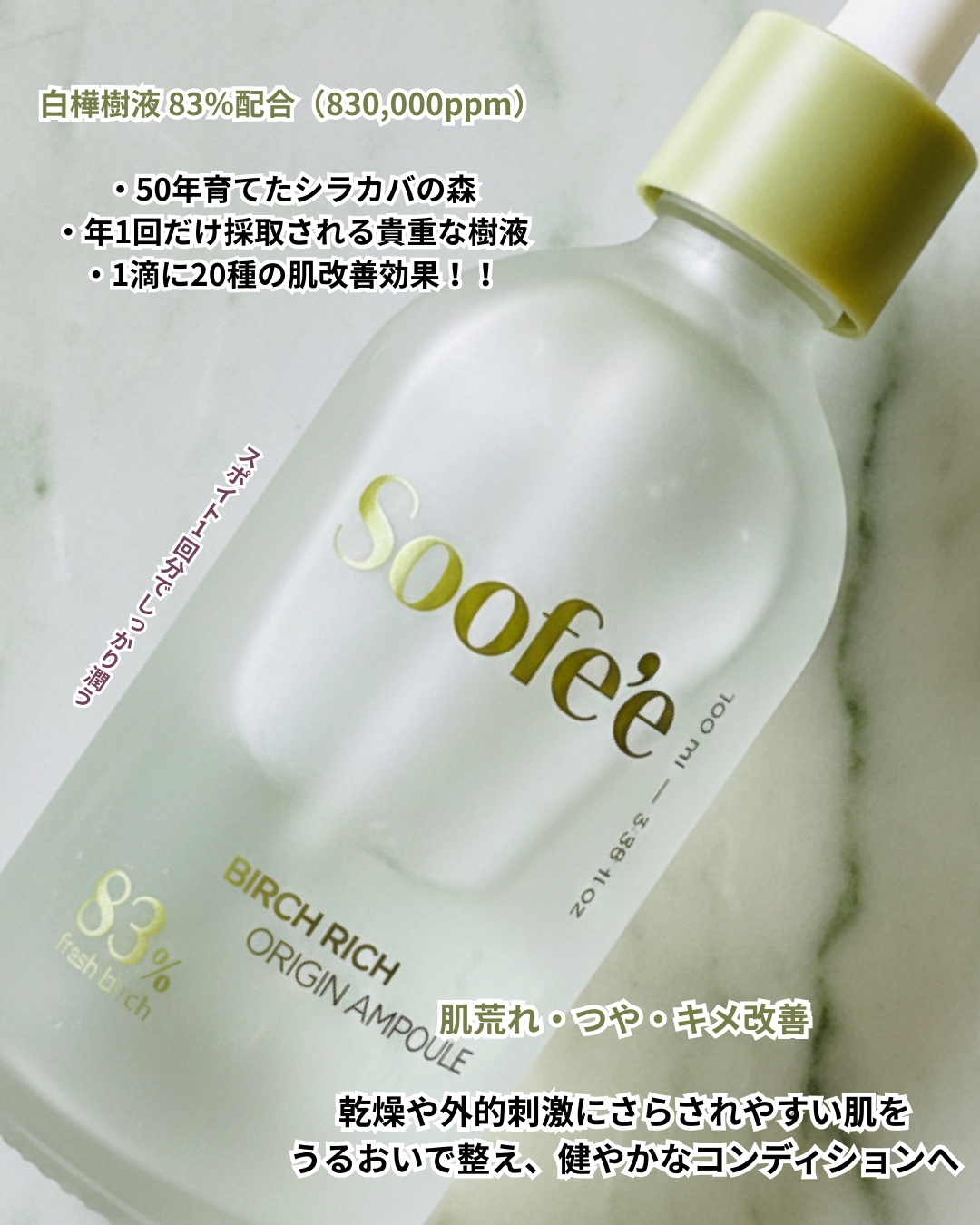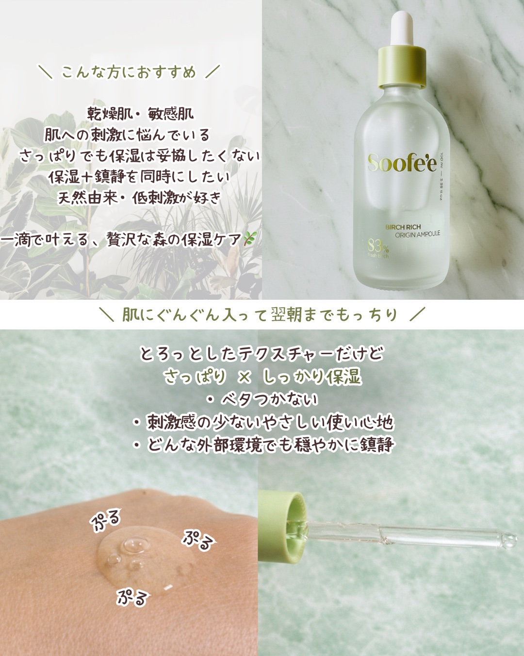 🌿使う前から思わず楽しみになるSoofe'e(スペ)バーチリッチセラム@soofee_jpルームフレグランスのようなオシャレなパッケージそっと開けると大きめのセラムが◎!こちらは肌あたりのいいとろみあるテクスチャーベタつきもなく肌に広がるので...