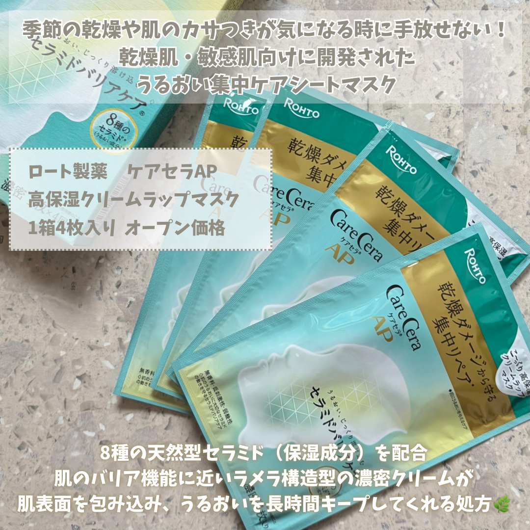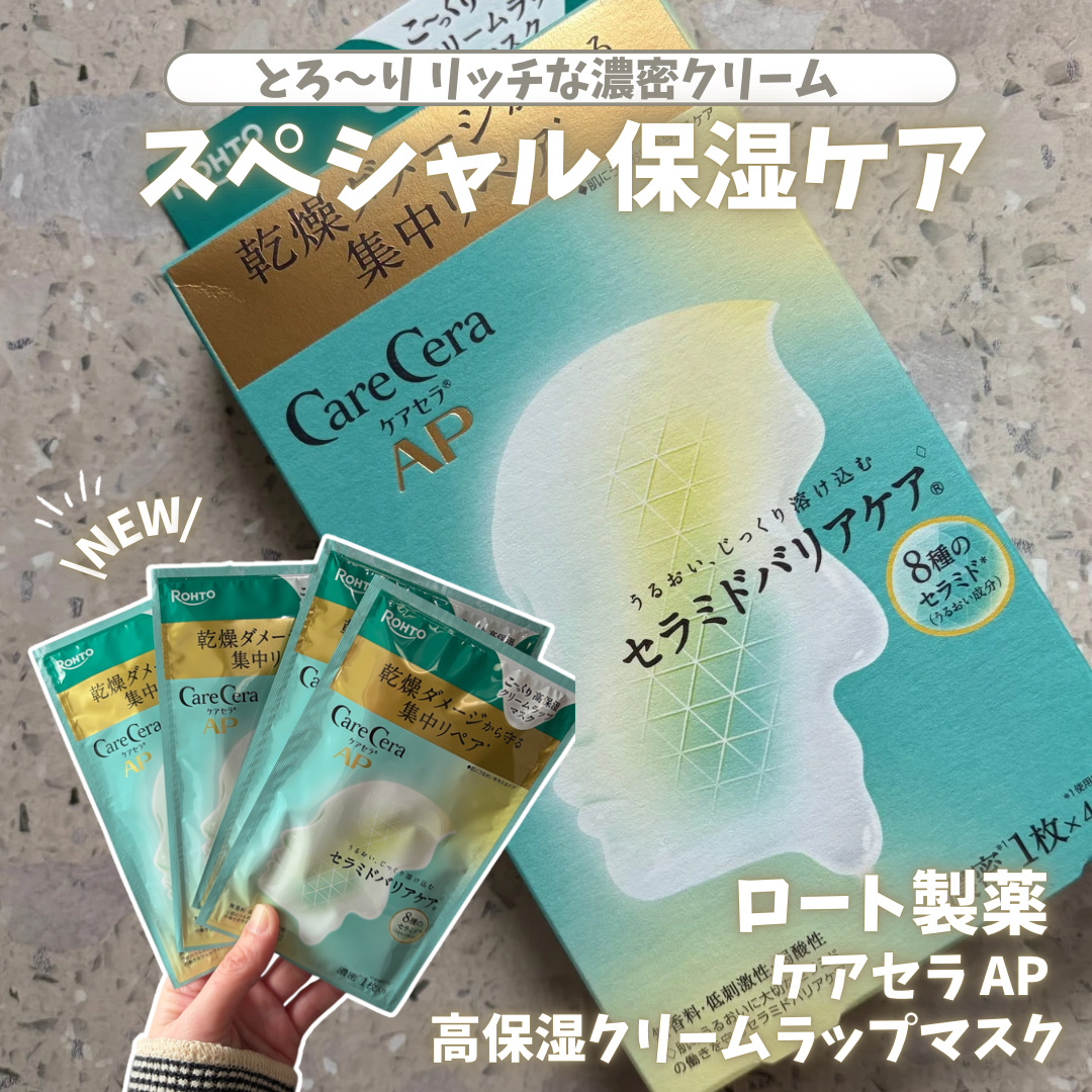 【ケアセラAP高保湿クリームラップマスク💚】\こっくりした使用感でつつみこむ‼️高保湿クリームラップマスク/✔︎︎︎︎8種の天然型セラミド(*1)(うるおい成分)配合✔︎︎︎︎ラメラ構造型(*2)の濃密(*3)クリームがつつみこみうるおいに満...