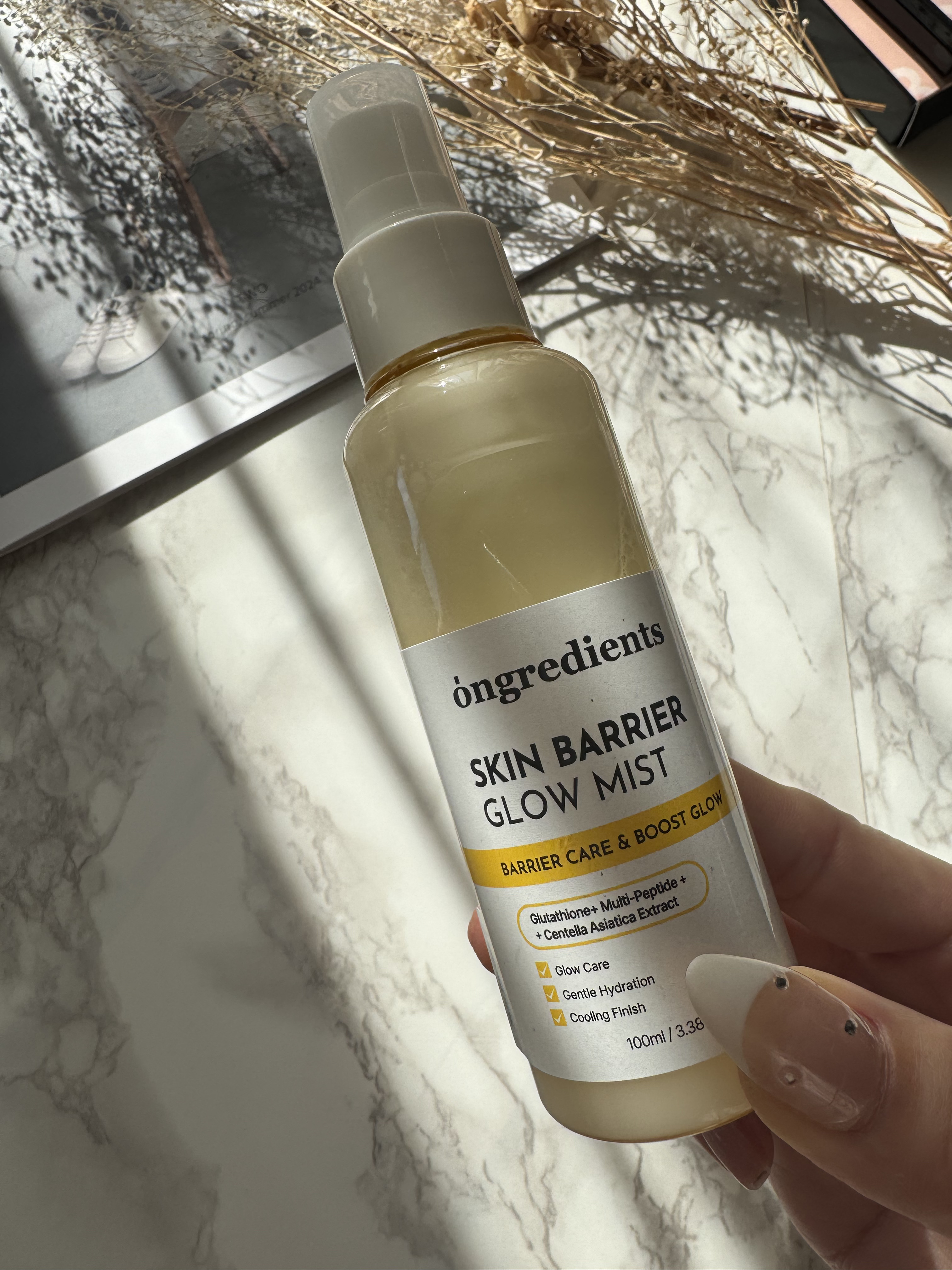 - 「ongredients(オングリディエンツ)」が、ついに日本のオフライン店舗に登場! <2025年8月30日(土)(*1)より全国のプラザ、ドン・キホーテ(*2)にて先行販売を開始> 水光トナーと水分グロウ(ツヤ)成分が融合し、まるでハイライトを施したようなツヤ肌ミストを実現 【主要成分】 ・ツボクサ葉エキス(*3) 乾燥などの外的刺激を受けた肌を整え、肌バリア(*4)機能を守ります。 ・複合ペプチド(*5) 肌のコンディションを整え、ハリのある肌印象へと導きます。 ・ヒアルロン酸(*6)&パンテノール(*7) 乾燥した肌を保湿ししっとり健やかに保ちます。 【こんな方におすすめ】 ・外的刺激により乾燥で肌がゆらぐのが気になる方 ・保湿とキメのダブルケアをしたい方 ・メイクの上からでも!外出先でも、肌にうるおいを与えたい方 (*1)店頭開始日となり、購入可能日は各店舗により異なります。 (*2)一部店舗を除きます。 (*3)整肌成分 (*4)角質層のうるおいを保つこと (*5)トリペプチド-1銅,トリペプチド-1,パルミトイルトリペプチド-1,パルミトイルペンタペプチド-4,ヘキサペプチド-11,ヘキサペプチド-9 (*6)ヒアルロン酸Na,ヒアルロン酸クロスポリマーNa,ヒアルロン酸K,ヒアルロン酸ヒドロキシプロピルトリモニウム,加水分解ヒアルロン酸Na,加水分解ヒアルロン酸,ヒアルロン酸(保湿成分) (*7)保湿成分