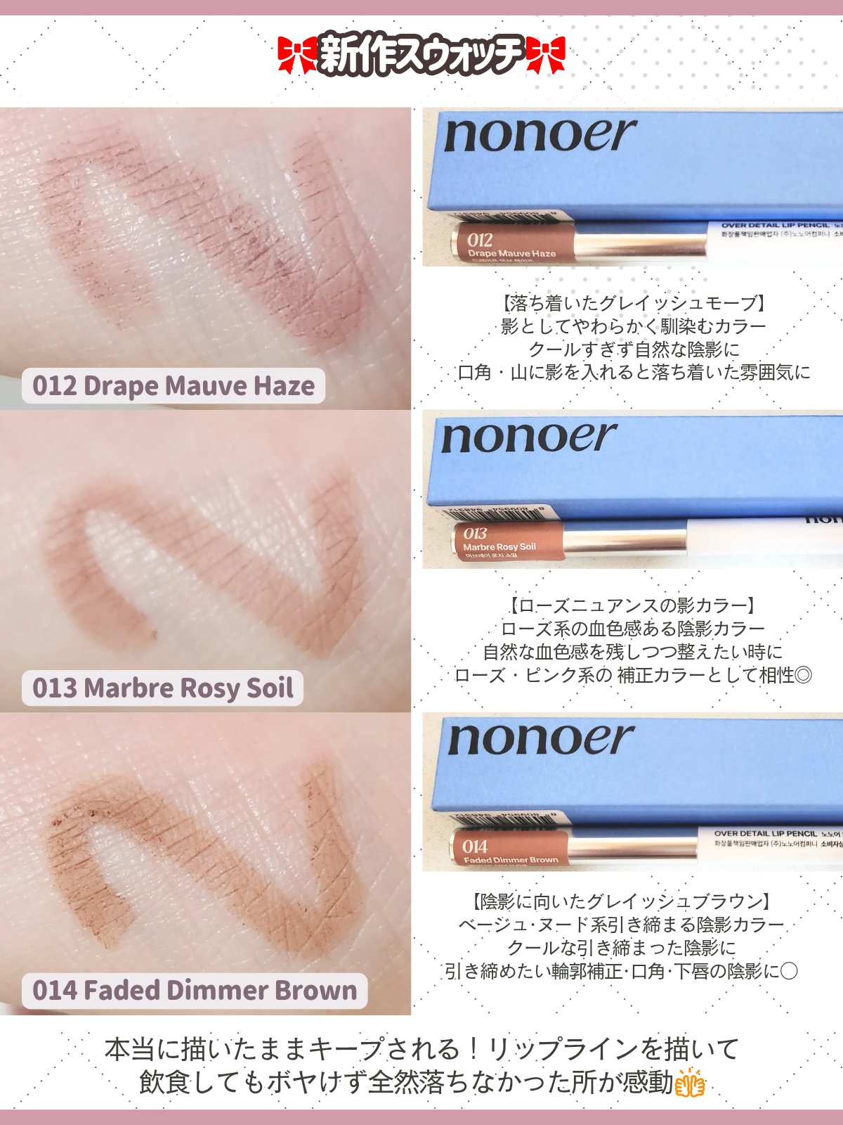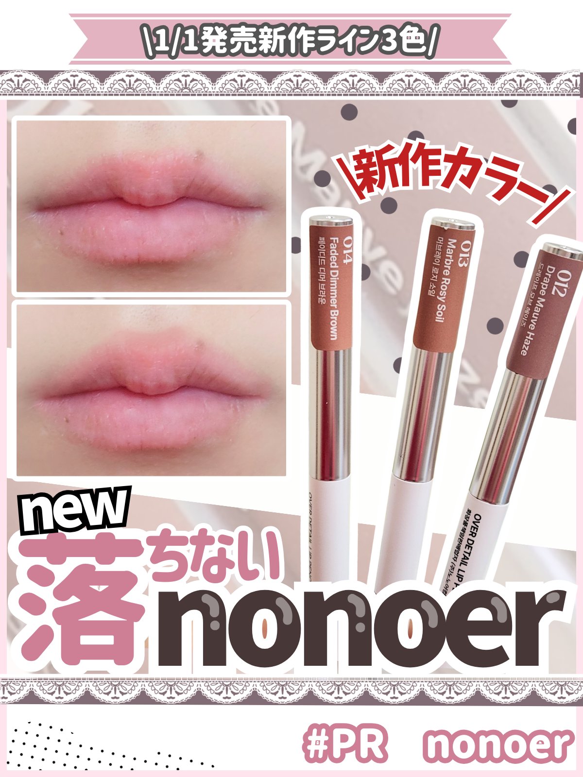nonoer(ノノア)OverDetailLipPencil描きやすい!落ちにくい!色味も最高!大好きなリップペンシルになった🥰ヘビロテする♡̴⟡.˚塗った瞬間の密着力が高いのも凄いんだけど、指でこすっても落ちなくて固定されてるのにも感動です...