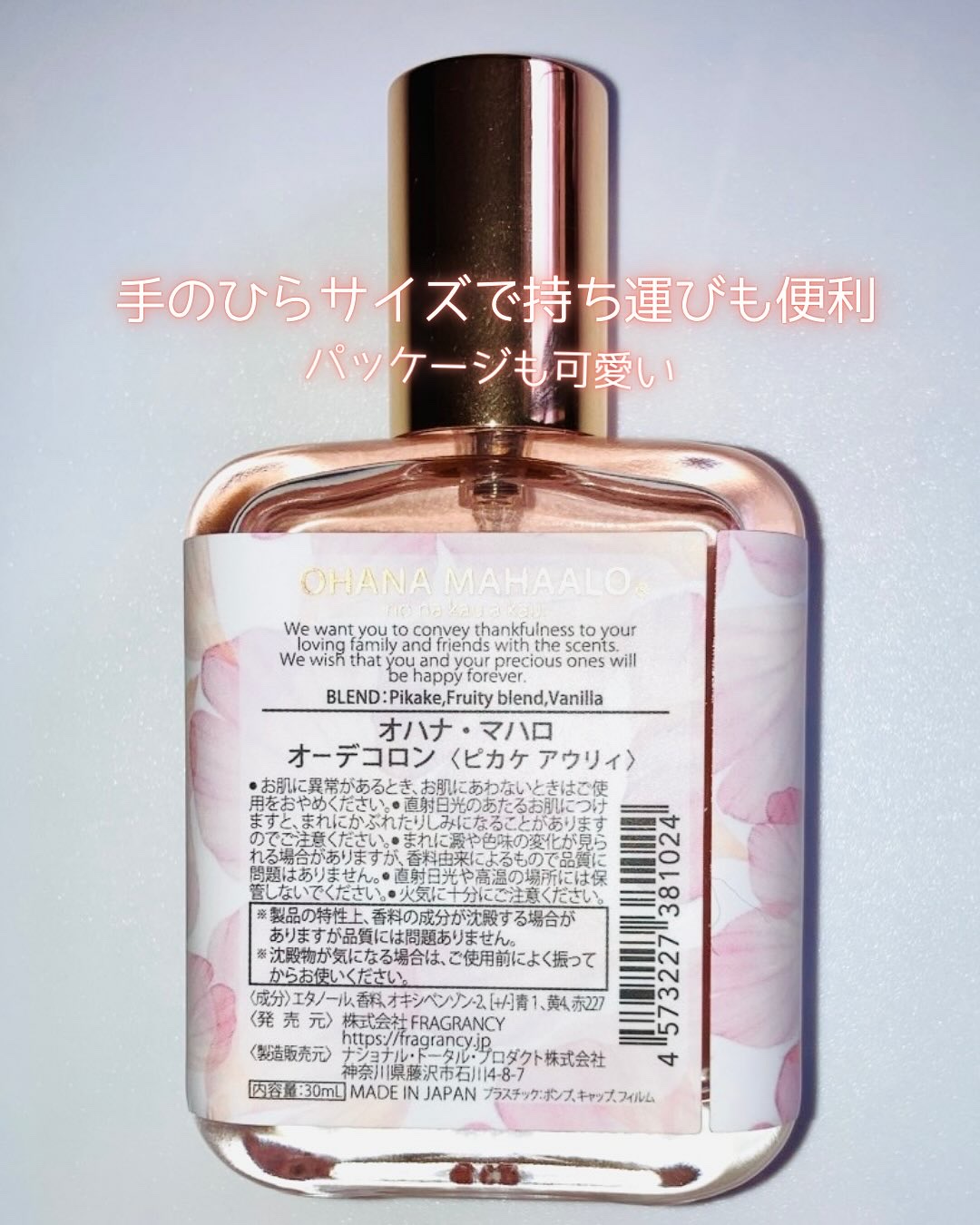 OHANAMAHAALOピカケアウリィめっちゃ可愛いボトルのオーデコロン♪ピカケは「ジャスミン」アウリィは「優雅な」という意味✨トップノート:ジャスミン(ピカケ)ミドルノート:フルーティーブレンドラストノート:バニラ早速、使ってみると.......