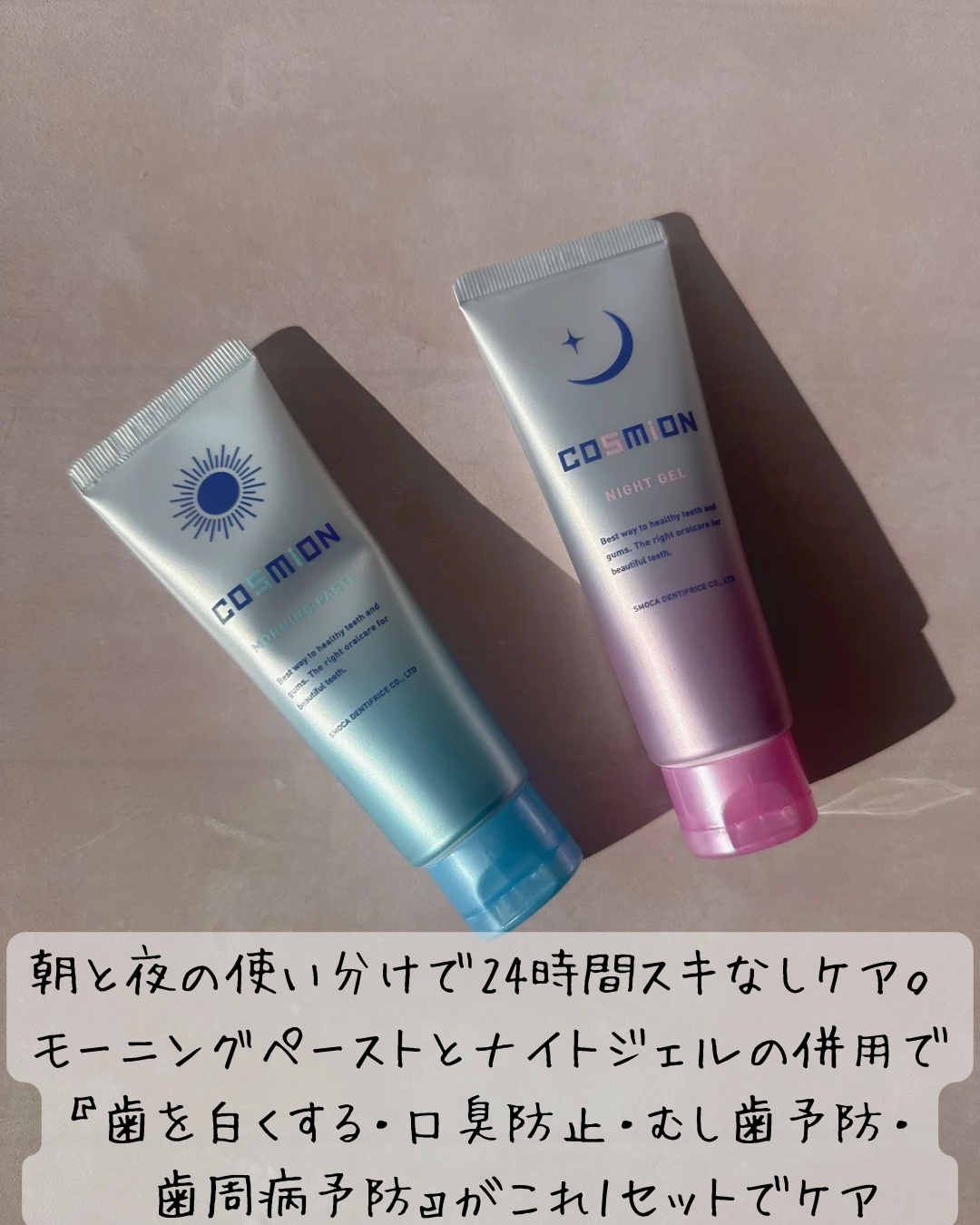 🥂COSMiONコスミオン🥂朝用モーニングペースト(美白ケア)寝ている間に増殖した細菌や付着している着色汚れ(ステイン)を高機能シリカ*清掃剤が朝を爽やかにしてくれます₍ᐢ⸝⸝›̫‹⸝⸝ᐢ₎クリアないい息と舌で触るとツルツルする歯が気持ちいい...