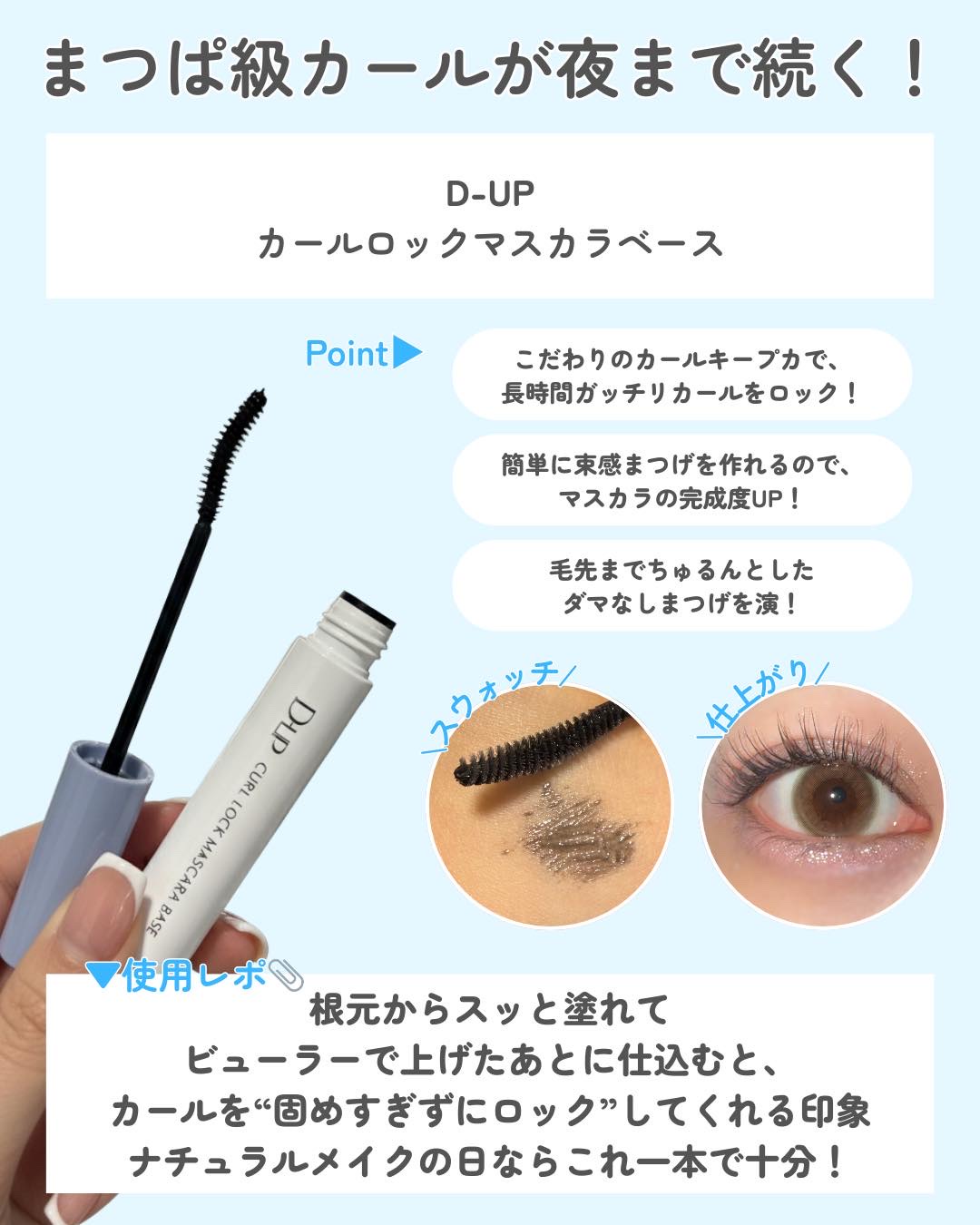 LIPS当選品D-UPカールロックマスカラベースN✨下地って手間なイメージあったけど、これは使い方次第でかなりラクだったよ😊私の使い方は、ビューラーでしっかり根元上げたあとに、根元中心にサッとひと塗り。毛先まで欲張らないのがポイント💡ちょっと...