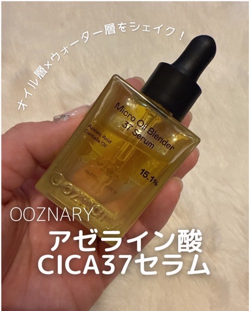 #Ooznary☑︎#アゼライン酸CICA37セラムニキビができやすい肌や皮脂もくすみ*も気になる時にアゼライン酸**配合で、ベタつきやすい肌も攻めすぎずにすこやかに整えてくれる感じ。グリチルリチン酸**やコウジ酸**ツボクサオイル**も...