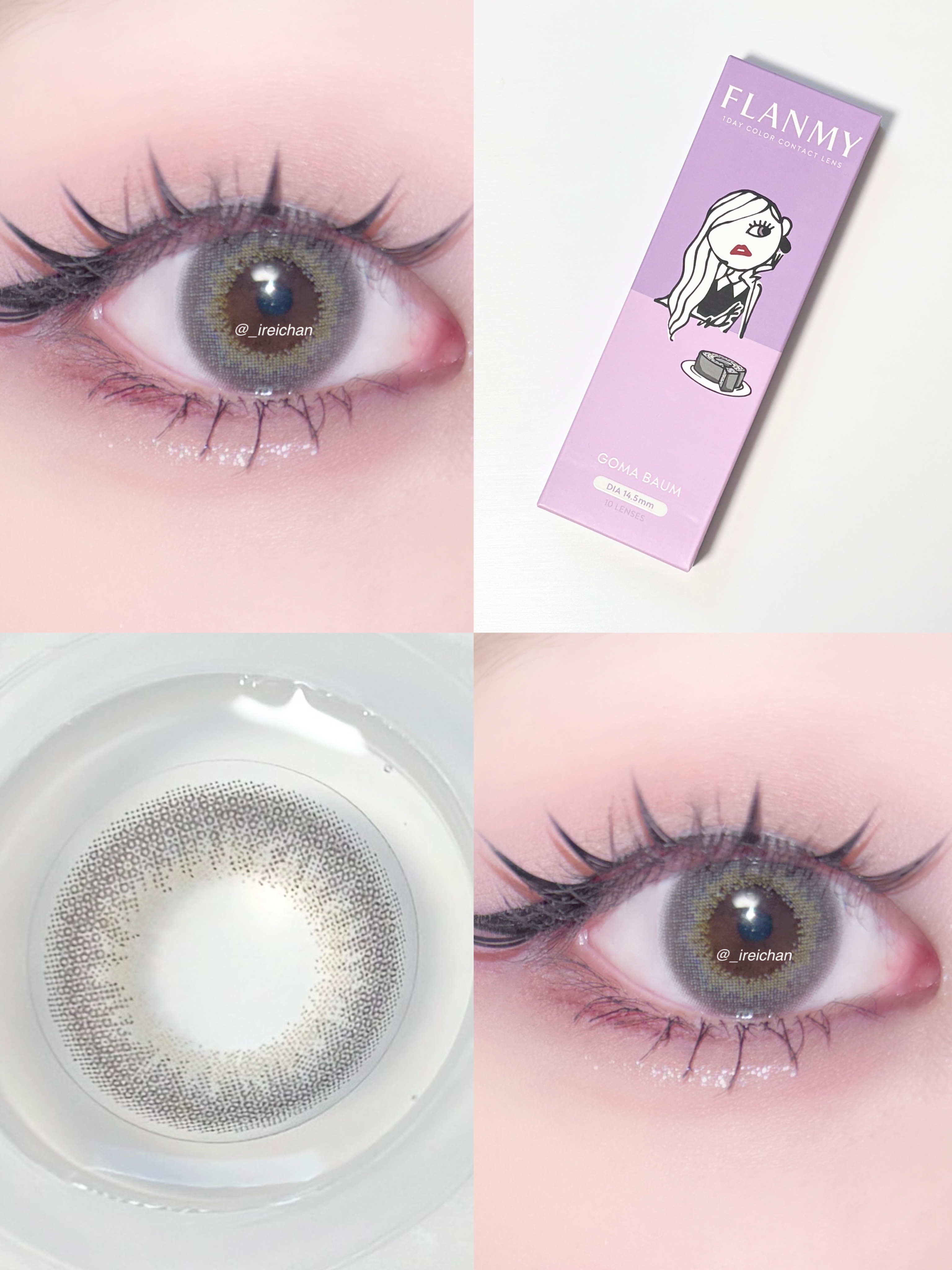 \やっぱりFLANMY可愛いっ‼︎/ 🤍FLANMY CREAM MACARON・GOMA BAUM・TULLE ROSE🤍 フランミーがパッケージをリニューアル🥺💕 贅沢ハイライトを採用したレンズで瞳に光と立体感を演出✨ 左右対称のWハイライトデザインでくりっとした印象に👀 甘ふわ×恋ブラウンカラー💘 キラリと包みこむふんわりヴェールなシアーロゼブラウンでじゅわっと血色感もある甘めな印象になれるよ👀💕