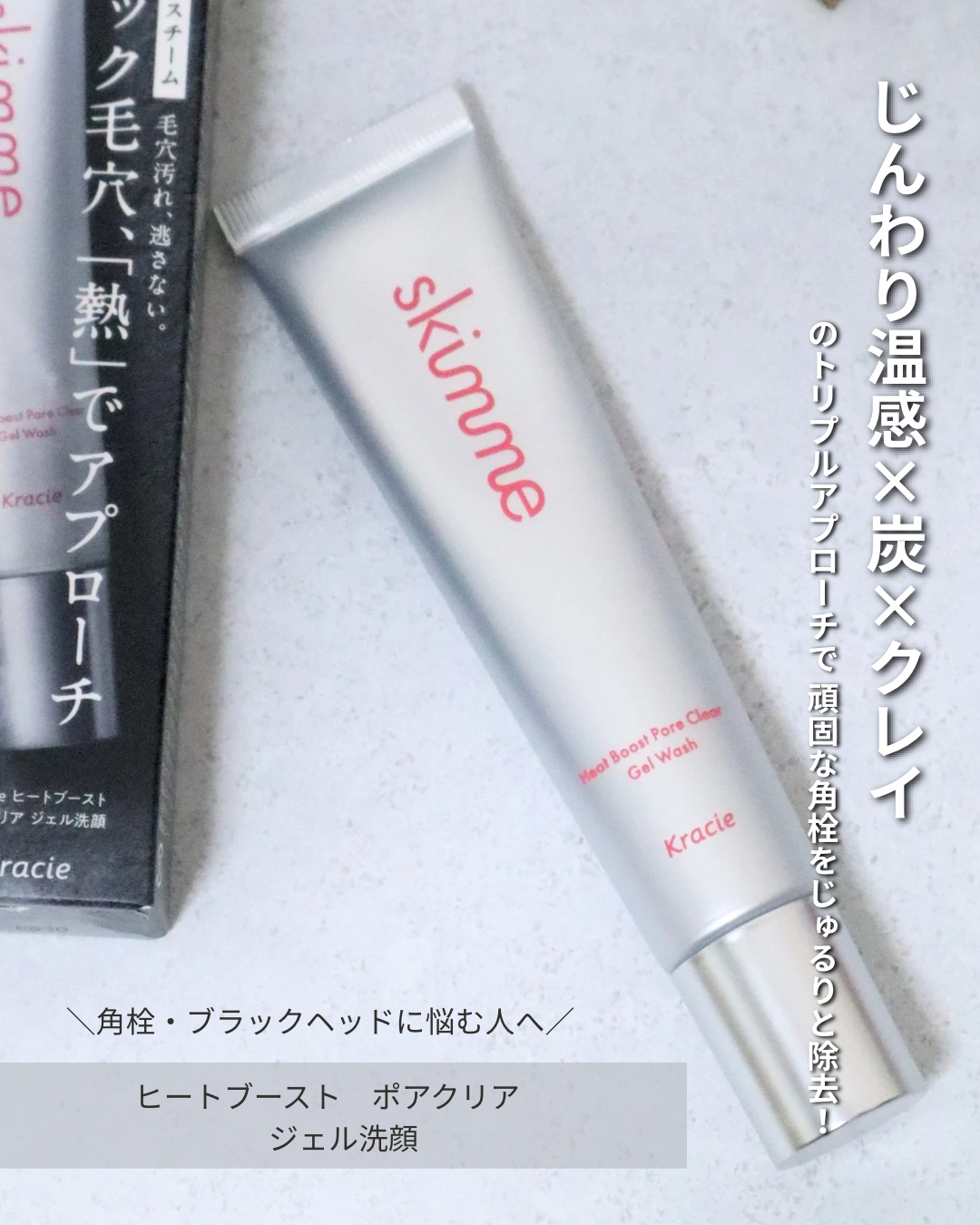 想像以上にツルツル✨クラシエskimme ヒートブースト ポアクリア ジェル洗顔@skimme_kracie・・・・・・・・・・ブラック毛穴に熱でアプローチするジェル洗顔じんわり温感×炭×クレイのトリプルアプローチで頑固な角栓をじゅるりと除去...
