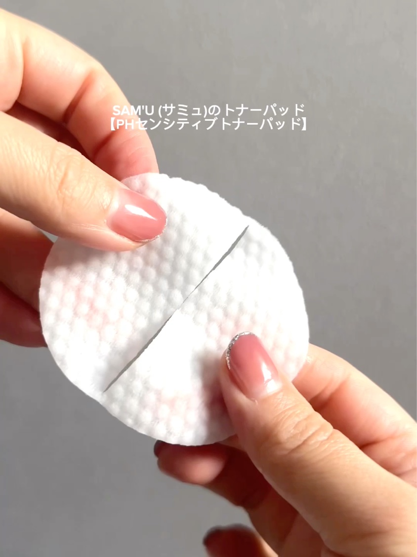 .♡@sam_u_jp@samu_jp_reviewサミュPHセンシティブトナーパッド切り取り線に沿って半分にちぎって、どんな部位でも隙間なくパタッと!微細なケア🫶🏻🤍分厚くなった生地がたっぷり185ml大容量エッセンスを含んで、しっとり...