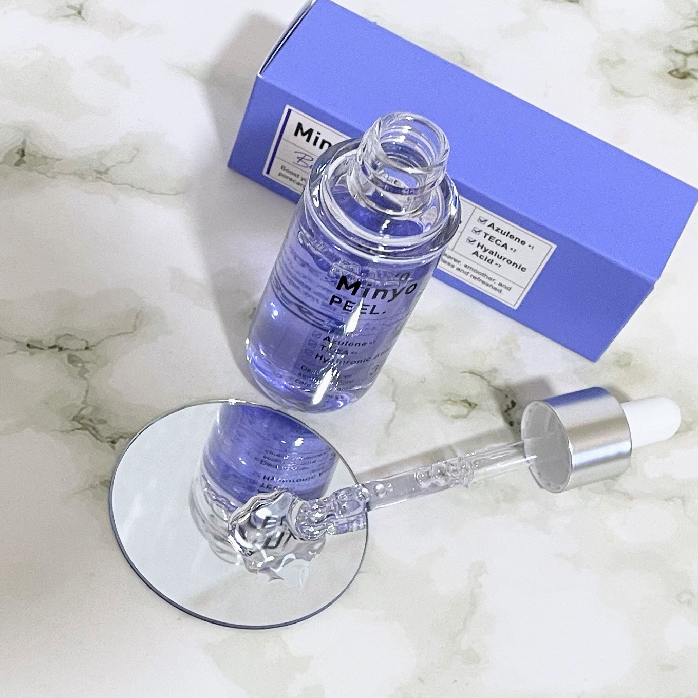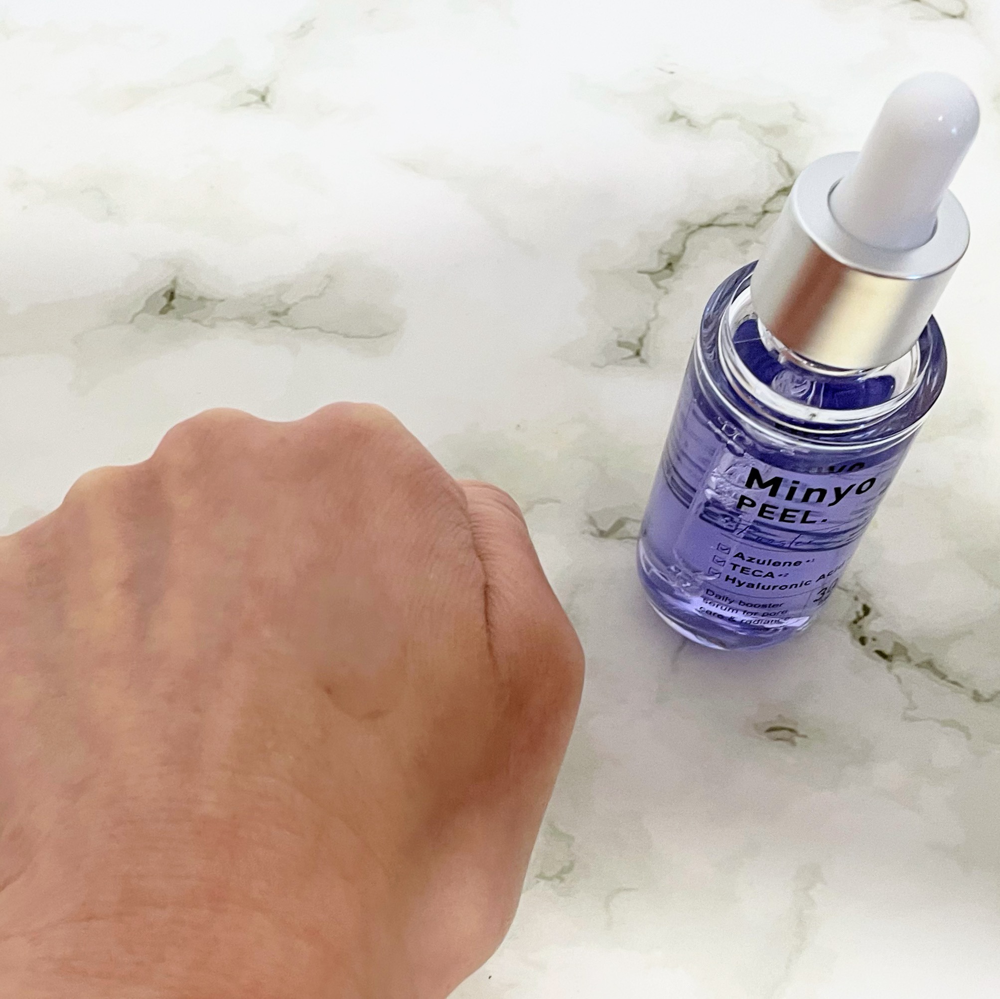<商品名>MinyoPEEL.(ミニョピール)香りがないのが使いやすいです。お風呂上がりに化粧水を塗った後に使ってますが、洗顔後すぐで良さそうですね。紫色の美容液が綺麗ですが、手に取ると分からない程度でした。色々な成分が配合されているなので、...