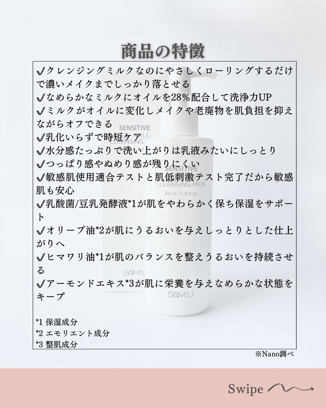 商品詳細情報SAM'U センシティブオイルフルクレンジングミルク
