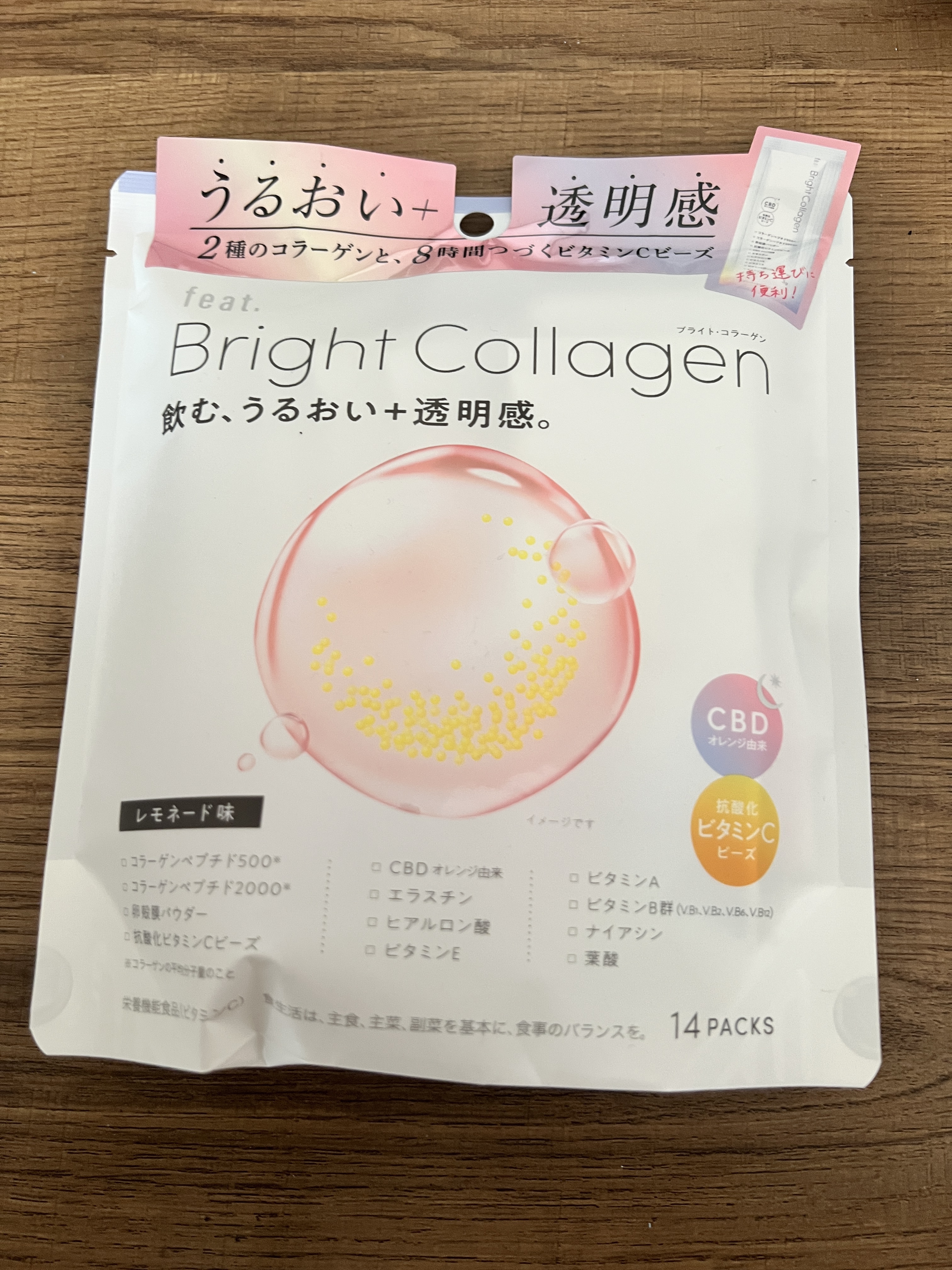 feat.ブライトコラーゲン(14包入/袋)飲む、うるおい+透明感。サイズの異なるコラーゲンペプチドと時間をかけてじっくり溶ける多重構造の抗酸化ビタミンCビーズを1包に詰め込んだキレイ習慣をサポートする、栄養機能食品です。年齢と共に減少するエ...