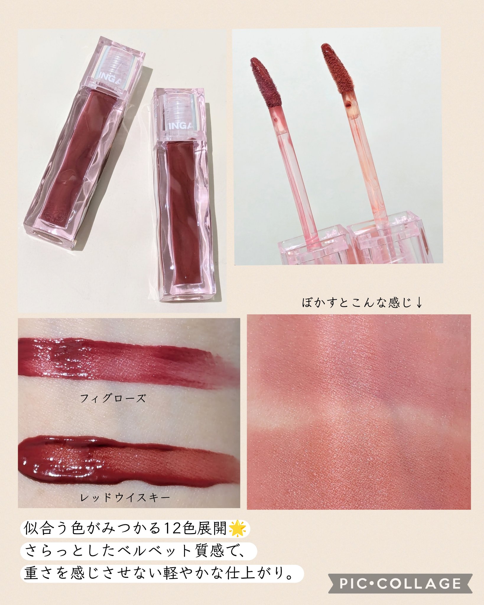 INGA(インガ)「ブラーリングベルベットマットティント」を使ってみました😊こちらは1月9日発売の新商品✨ふんわり雲みたいな超軽量マットティントリップになります。12色の幅広いカラー展開が魅力なので、自分に似合う色が見つかりそう!✼••┈┈•...