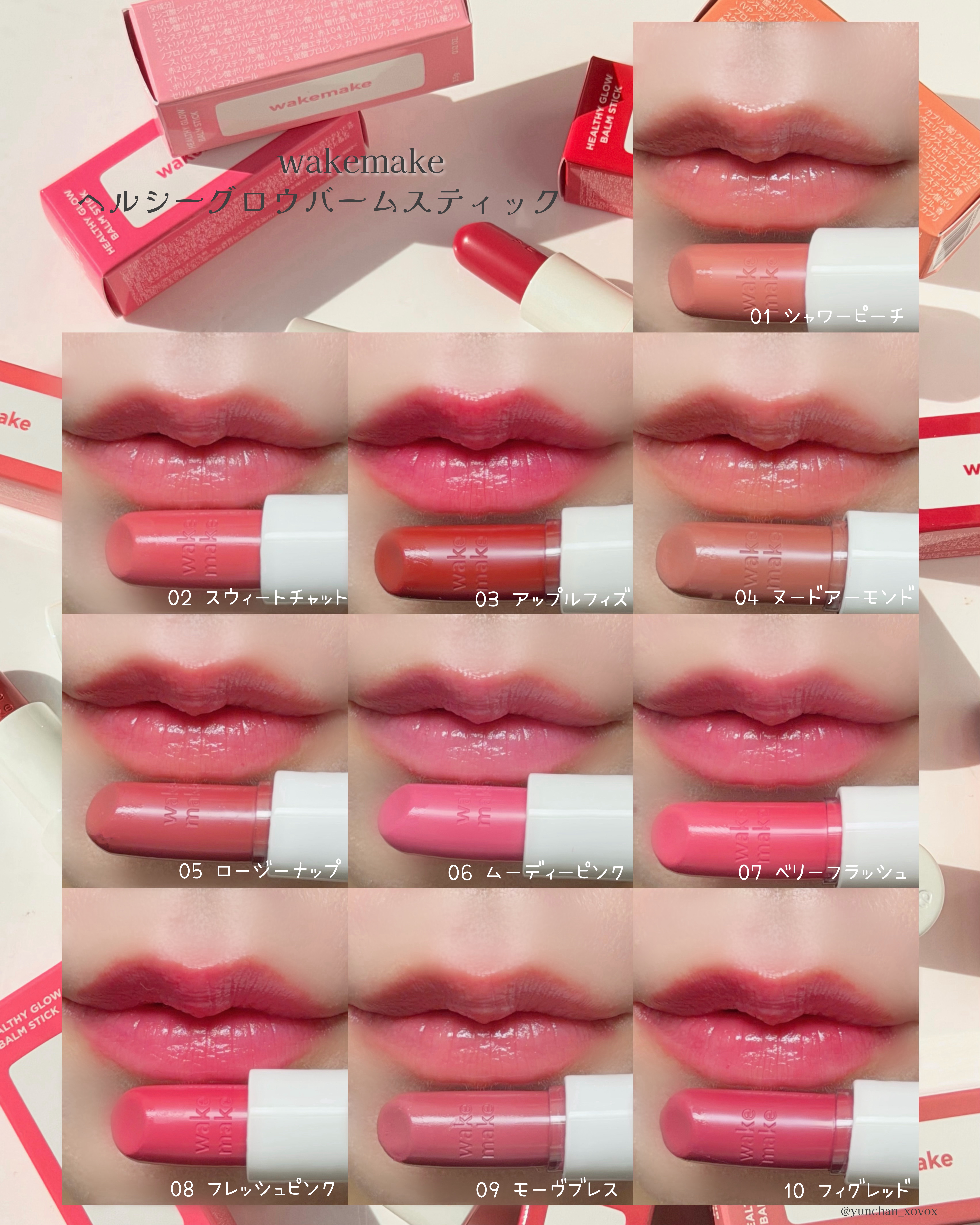 - <01 シャワーピーチ> リンゴ酸ジイソステアリル、オクチルドデカノール、トリ(カプリル酸/カプリン酸)グリセリル、トリメリト酸トリトリデシル、合成ワックス、ペンタイソステアリン酸ジペンタエリスリチル、ジイソステアリン酸ポリグリセリル-3、水添ポリイソブテン、マイクロクリスタリンワックス、ステアロイルオキシステアリン酸オクチルドデシル、酸化チタン、トリイソステアリン酸ポリグリセリル-2、シリカ、(VP/エイコセン)コポリマー、パラフィン、(ラズベリー種子油/コハク酸トコフェロール)アミノプロパンジオールエステルズ、イソステアリン酸ソルビタン、黄4、トリ酢酸テトラステアリン酸スクロース、(セバシン酸/イソパルミチン酸)ジグリセリル、酸化鉄、ポリヒドロキシステアリン酸、赤104(1)、ジステアルジモニウムヘクトライト、レシチン、赤202、ジイソステアリン酸ポリグリセリル-2、イソステアリン酸、パルミチン酸エチルヘキシル、ミリスチン酸イソプロピル、香料、青1、ポリリシノレイン酸ポリグリセリル-3、炭酸プロピレン、カプリリルグリコール、カプリル酸グリセリル、トコフェロール <02 スウィートチャット> リンゴ酸ジイソステアリル、オクチルドデカノール、トリ(カプリル酸/カプリン酸)グリセリル、トリメリト酸トリトリデシル、合成ワックス、ペンタイソステアリン酸ジペンタエリスリチル、ジイソステアリン酸ポリグリセリル-3、水添ポリイソブテン、マイクロクリスタリンワックス、ステアロイルオキシステアリン酸オクチルドデシル、酸化チタン、シリカ、トリイソステアリン酸ポリグリセリル-2、(VP/エイコセン)コポリマー、パラフィン、酸化鉄、(ラズベリー種子油/コハク酸トコフェロール)アミノプロパンジオールエステルズ、イソステアリン酸ソルビタン、トリ酢酸テトラステアリン酸スクロース、(セバシン酸/イソパルミチン酸)ジグリセリル、ポリヒドロキシステアリン酸、赤201、赤104(1)、ジステアルジモニウムヘクトライト、レシチン、赤202、ジイソステアリン酸ポリグリセリル-2、イソステアリン酸、パルミチン酸エチルヘキシル、ミリスチン酸イソプロピル、香料、ポリリシノレイン酸ポリグリセリル-3、炭酸プロピレン、カプリリルグリコール、カプリル酸グリセリル、トコフェロール <03 アップルフィズ> リンゴ酸ジイソステアリル、オクチルドデカノール、トリ(カプリル酸/カプリン酸)グリセリル、トリメリト酸トリトリデシル、トリイソステアリン酸ポリグリセリル-2、合成ワックス、ペンタイソステアリン酸ジペンタエリスリチル、ジイソステアリン酸ポリグリセリル-3、水添ポリイソブテン、マイクロクリスタリンワックス、ステアロイルオキシステアリン酸オクチルドデシル、シリカ、(VP/エイコセン)コポリマー、パラフィン、(ラズベリー種子油/コハク酸トコフェロール)アミノプロパンジオールエステルズ、赤104(1)、イソステアリン酸ソルビタン、トリ酢酸テトラステアリン酸スクロース、(セバシン酸/イソパルミチン酸)ジグリセリル、黄5、黄4、ジイソステアリン酸ポリグリセリル-2、ポリヒドロキシステアリン酸、赤202、赤201、ジステアルジモニウムヘクトライト、レシチン、イソステアリン酸、パルミチン酸エチルヘキシル、ミリスチン酸イソプロピル、香料、ポリリシノレイン酸ポリグリセリル-3、青1、炭酸プロピレン、カプリリルグリコール、カプリル酸グリセリル、トコフェロール <04 ヌードアーモンド> リンゴ酸ジイソステアリル、オクチルドデカノール、トリ(カプリル酸/カプリン酸)グリセリル、トリメリト酸トリトリデシル、合成ワックス、ペンタイソステアリン酸ジペンタエリスリチル、トリイソステアリン酸ポリグリセリル-2、ジイソステアリン酸ポリグリセリル-3、水添ポリイソブテン、マイクロクリスタリンワックス、ステアロイルオキシステアリン酸オクチルドデシル、シリカ、酸化鉄、(VP/エイコセン)コポリマー、パラフィン、(ラズベリー種子油/コハク酸トコフェロール)アミノプロパンジオールエステルズ、イソステアリン酸ソルビタン、トリ酢酸テトラステアリン酸スクロース、(セバシン酸/イソパルミチン酸)ジグリセリル、酸化チタン、ポリヒドロキシステアリン酸、赤202、ジステアルジモニウムヘクトライト、レシチン、ジイソステアリン酸ポリグリセリル-2、青1、イソステアリン酸、パルミチン酸エチルヘキシル、ミリスチン酸イソプロピル、香料、ポリリシノレイン酸ポリグリセリル-3、炭酸プロピレン、カプリリルグリコール、カプリル酸グリセリル、トコフェロール <05 ロージーナップ> リンゴ酸ジイソステアリル、オクチルドデカノール、トリ(カプリル酸/カプリン酸)グリセリル、トリメリト酸トリトリデシル、合成ワックス、ペンタイソステアリン酸ジペンタエリスリチル、ジイソステアリン酸ポリグリセリル-3、水添ポリイソブテン、マイクロクリスタリンワックス、ステアロイルオキシステアリン酸オクチ