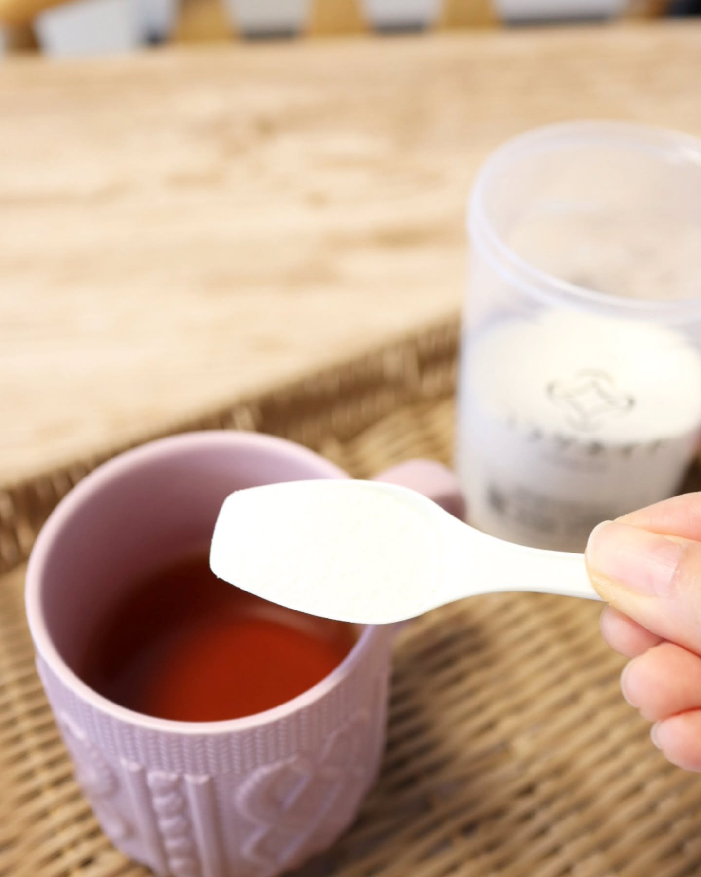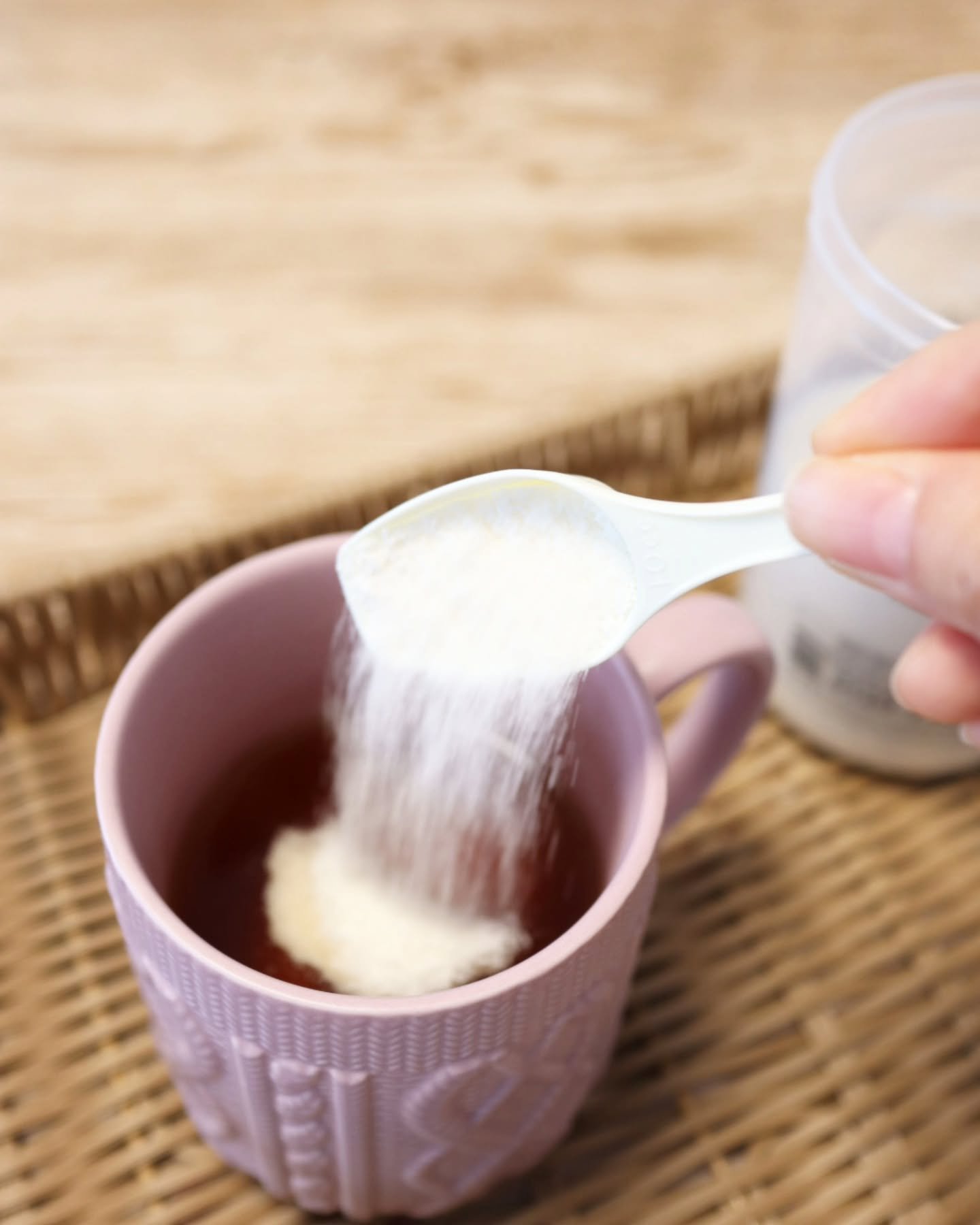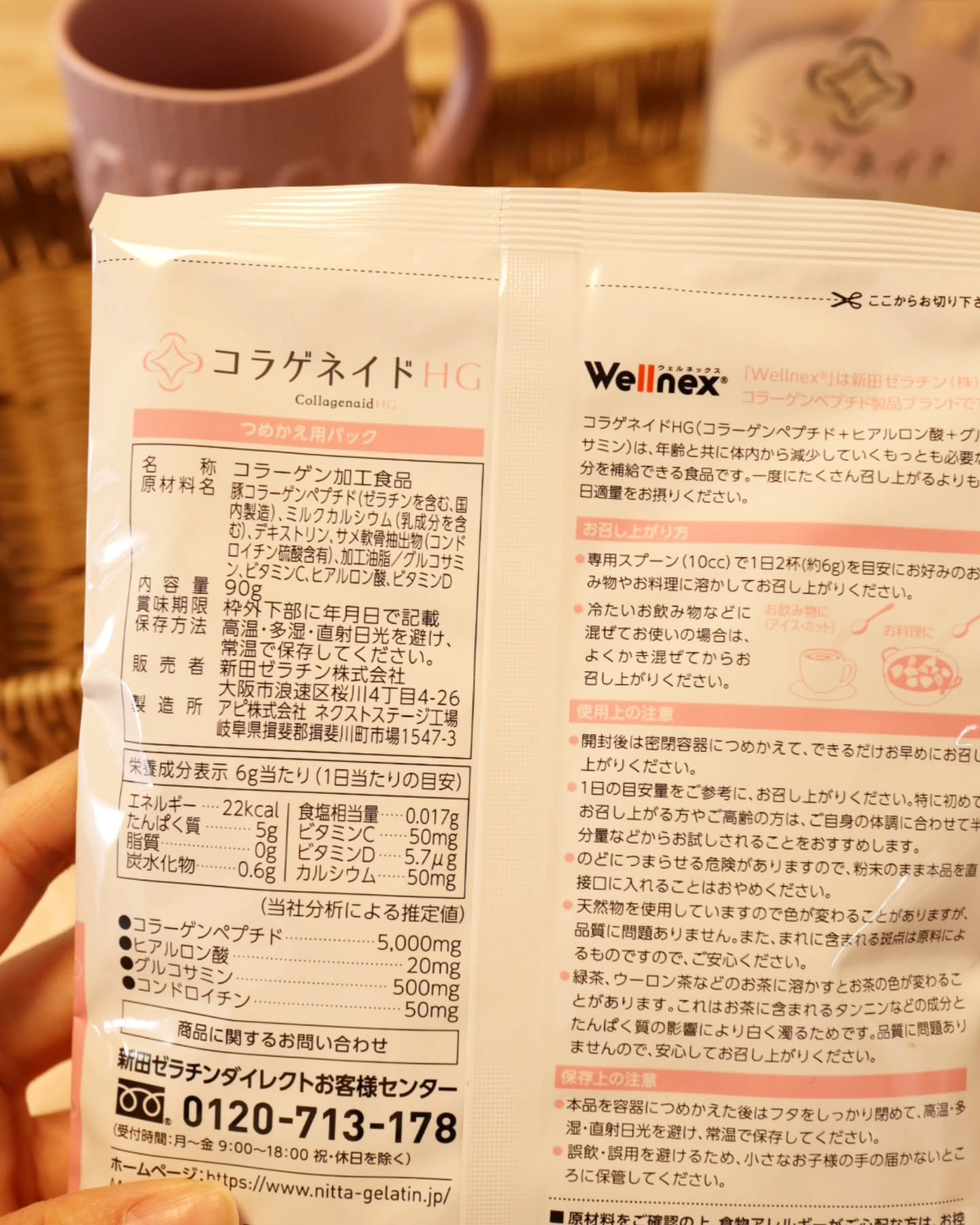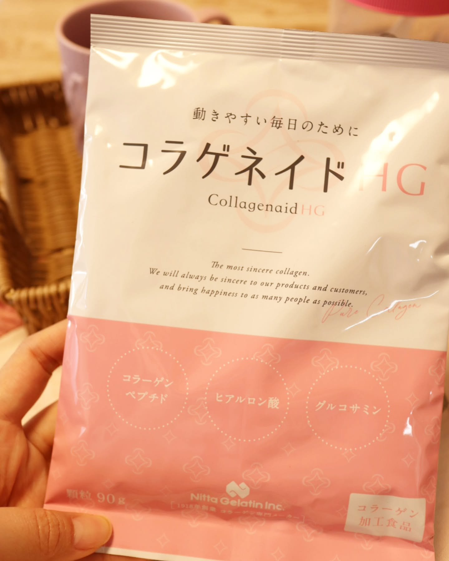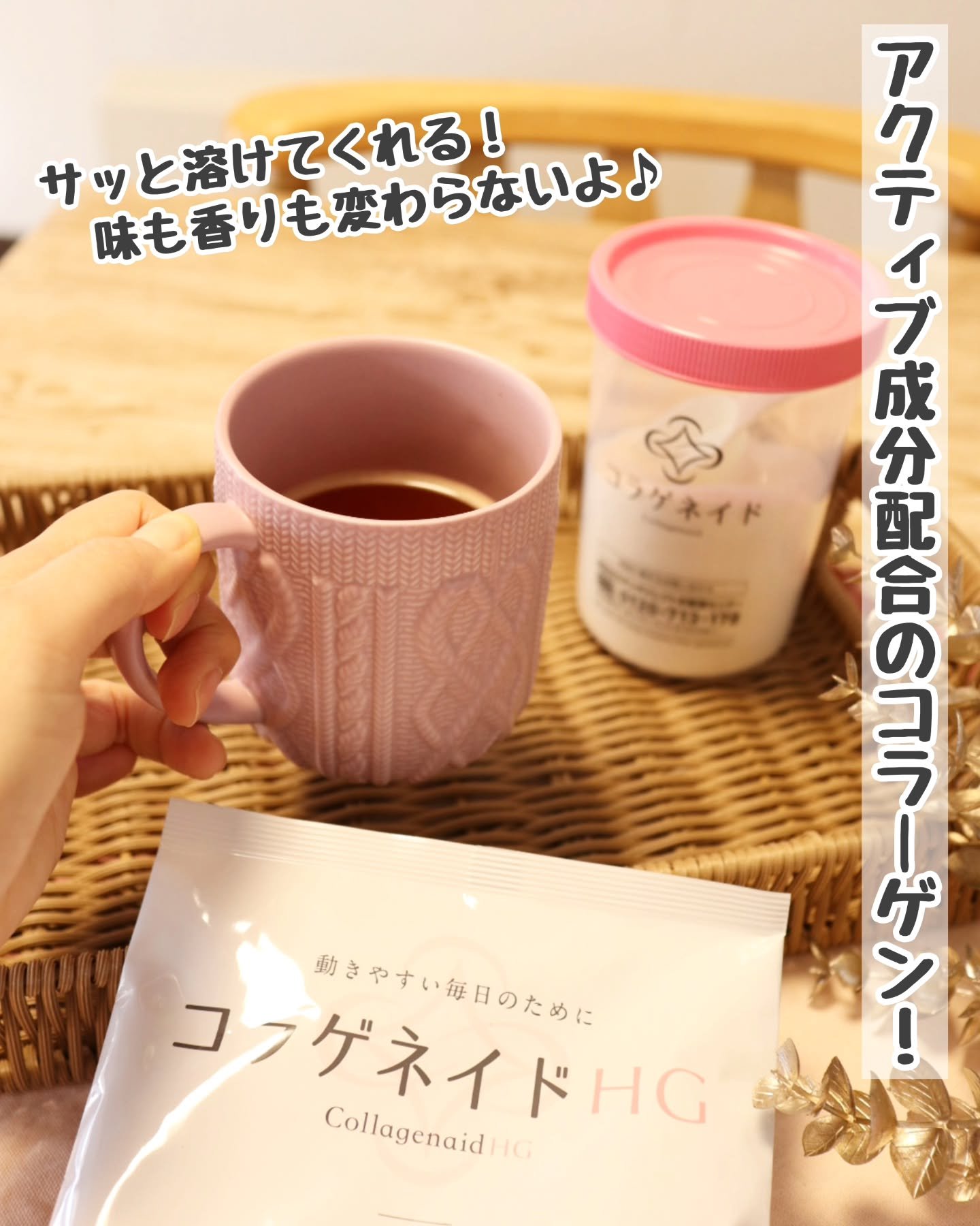年齢とともに体内から減少していく成分を、コラーゲンと一緒に補給することでアクティブな毎日を送りたい方をサポート! コラーゲンペプチド5000mg、ヒアルロン酸20mg、グルコサミン500mg、コンドロイチン50mgを配合! 溶けやすい顆粒タイプで無味・無臭なのでお味噌汁に入れたり、珈琲に入れたり、ヨーグルトに混ぜていただきました。
