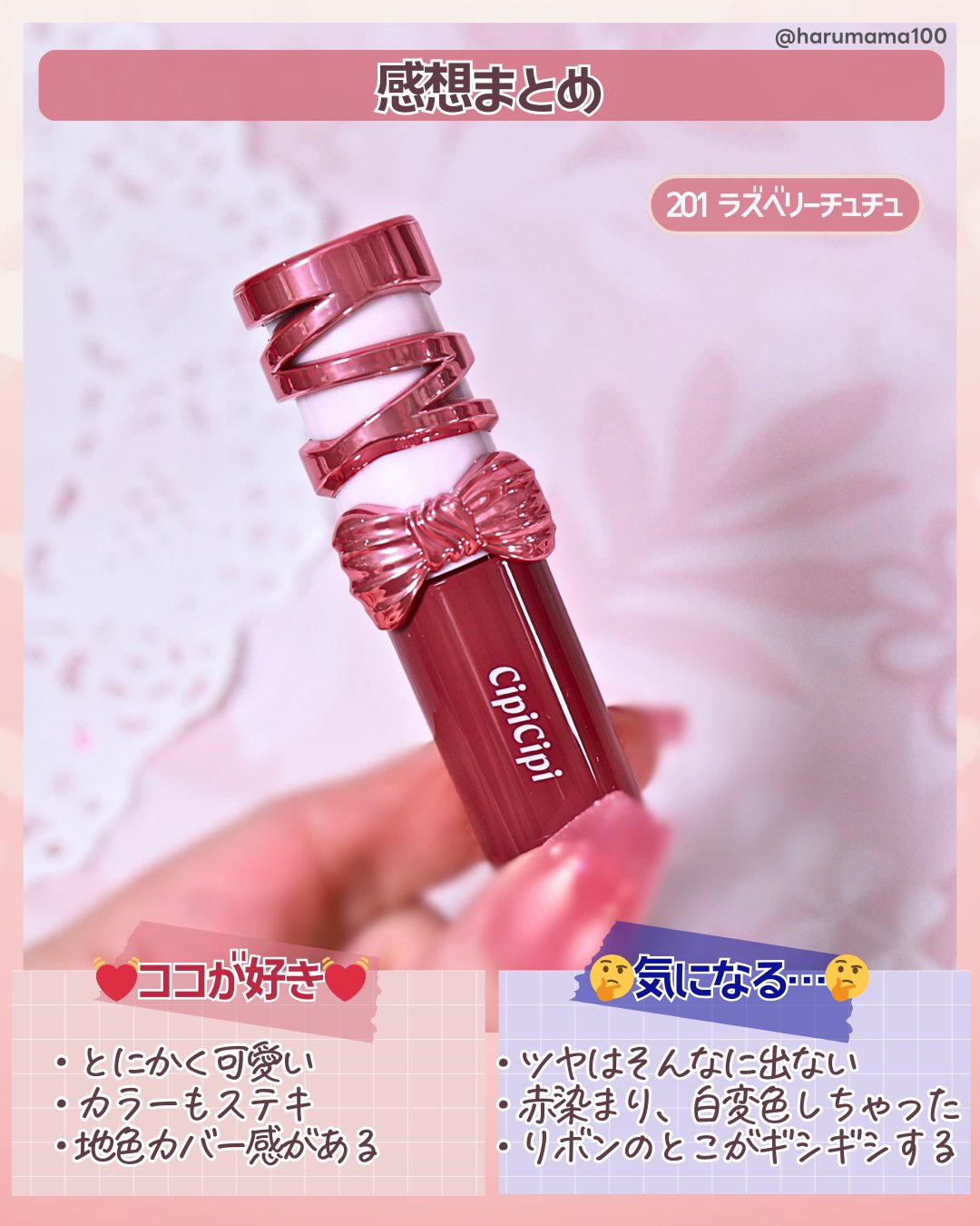 CipiCipiのリボンティントのVOCE限定色が可愛すぎた🥹🎀💗⚜️CipiCipiシピシピデューイフィルムティントR201ラズベリーチュチュ201ラズベリーチュチュは透明感あふれる絶妙なピンクカラーで、明るすぎずほんのりくすみもあるので肌...