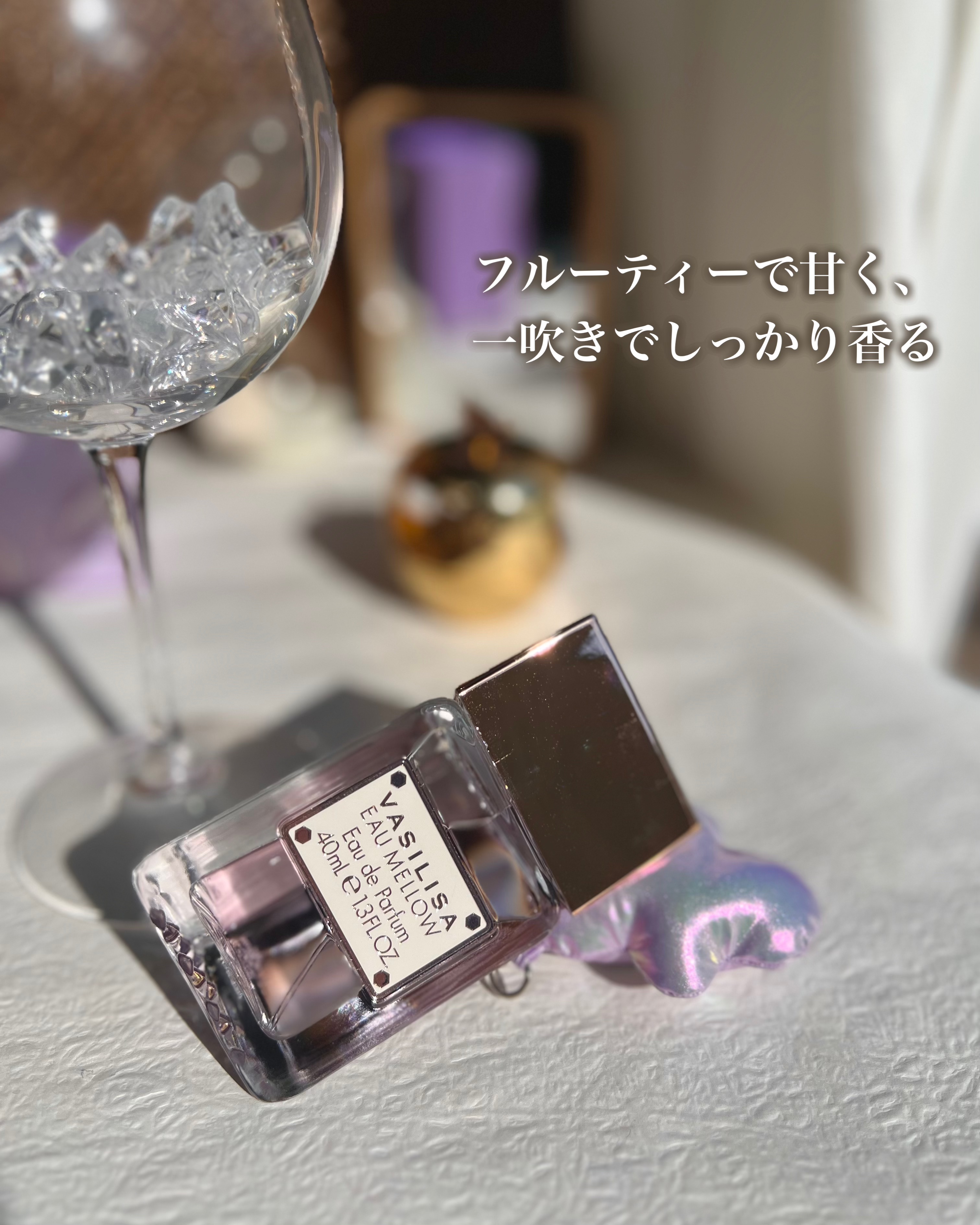- 軽やかなパープルに包まれ、まっすぐな眼差しで“甘さと芯の強さ”を表現。 ふんわりマシュマロ香る新作「オー メロウ オードパルファム」が発売 キー香料は、ふんわり甘いマシュマロ。 ジューシーなピーチとブルーベリーに、バニラオーキッドがしなやかな芯を添えます。 フルーティな甘さがやわらかいマシュマロを感じさせる香りです。 ボトルデザインの基調となるのは、軽やかながらもどこか芯の強さや意思を感じさせるパープル。 「オー メロウ」のコンセプトである“内に秘めた、芯のある女性”を表現しています。 【初回数量限定パッケージ】 「オー メロウ」の発売を記念して、オリジナルチャーム付きの初回限定パッケージが登場。 パッケージには、雲のように浮かぶマシュマロを大胆にデザインしました。 付属のチャームは、キラキラとした雲型クッションに、VASILISA の刻印入り“女王の王冠”を添えた特別仕様です。 ※数量限定、なくなり次第終了 <40mL> 1月17日(土) 全国のバラエティショップ、ディスカウントストア等 オンラインストア「FITS you. STORE」 https://store.fits-japan.com/shop、楽天市場、Qoo10 等 <8mL> 1月17日(土) 全国のロフト、PLAZA、アインズ&トルペ(※一部店舗を除く) オンラインストア「FITS you. STORE」 https://store.fits-japan.com/shop 等 2月28日(土) 全国のバラエティショップ、ディスカウントストア等 一般発売に先立ち、1月7日(水)より@cosmeTOKYO 特設売り場にて先行発売を行うほか、FITS ONLINE STORE 楽天市場店にて先行予約を開始いたします。