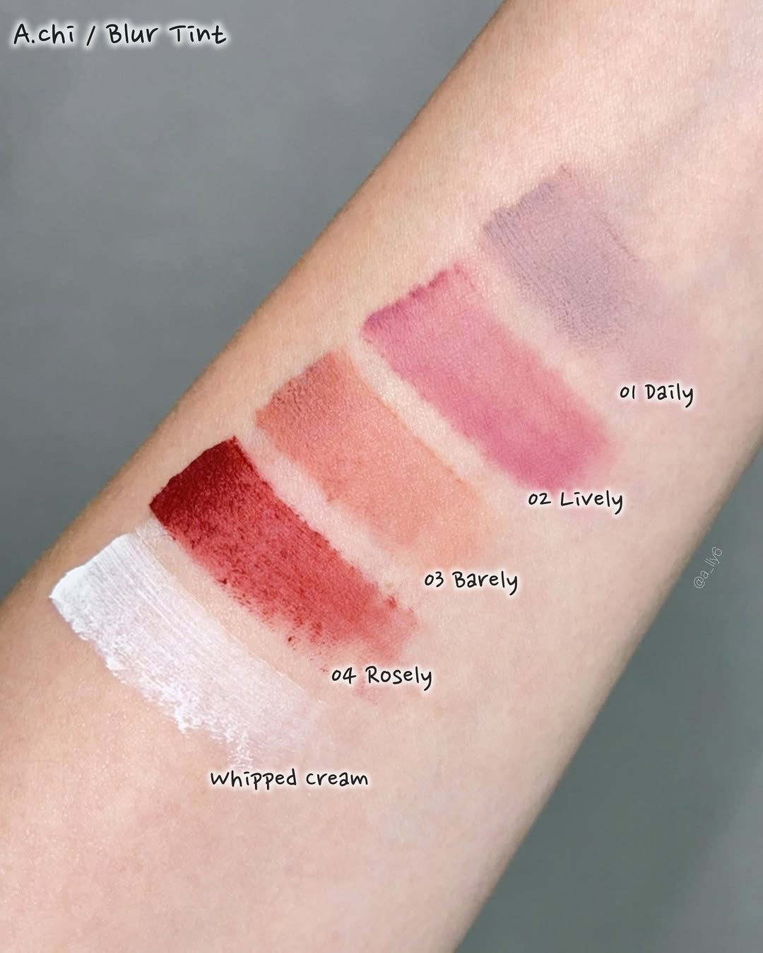 A.chiから可能性無限大✨ふんわりやわらかなホワイトリップ登場☁️🤍✦A.chiブラーティント07WhippedCream🆕01Daily02Lively03Barely06Chilling今回の新色はホワイト!どんなカラーとも相性がよく鮮...
