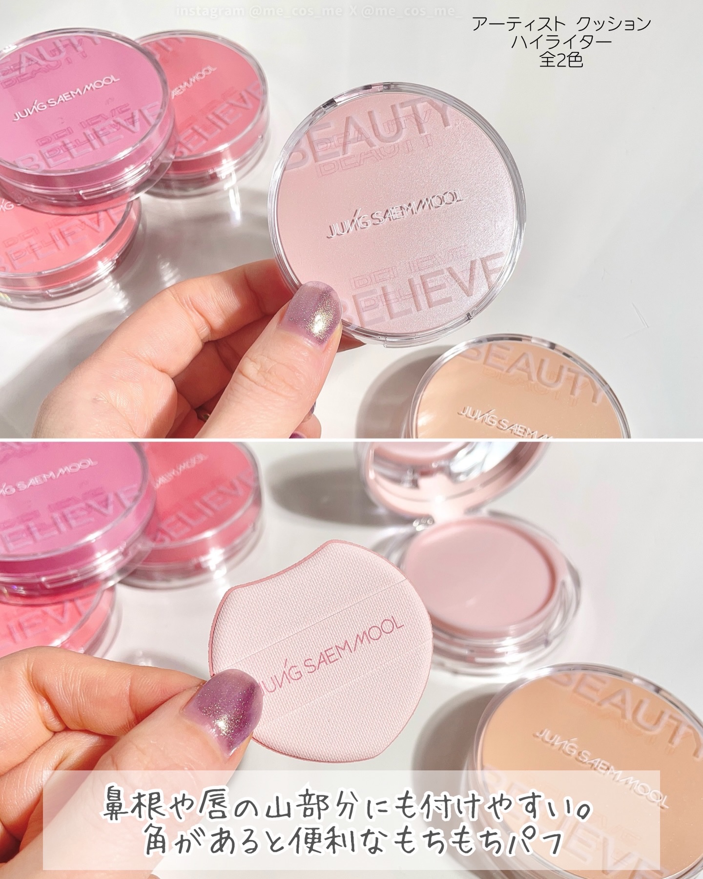⸝⸝⭑仄かなラメが可愛いクッション型ハイライター。しっとりしたテクスチャーで肌に付けるとヨレにくく、サクラ型のパフがしっかり肌に密着してくれます。ほんのりピンクなヘイローグリームとゴールドラメなヘイローベールどちらも可愛くてお気に入りです✨💗...