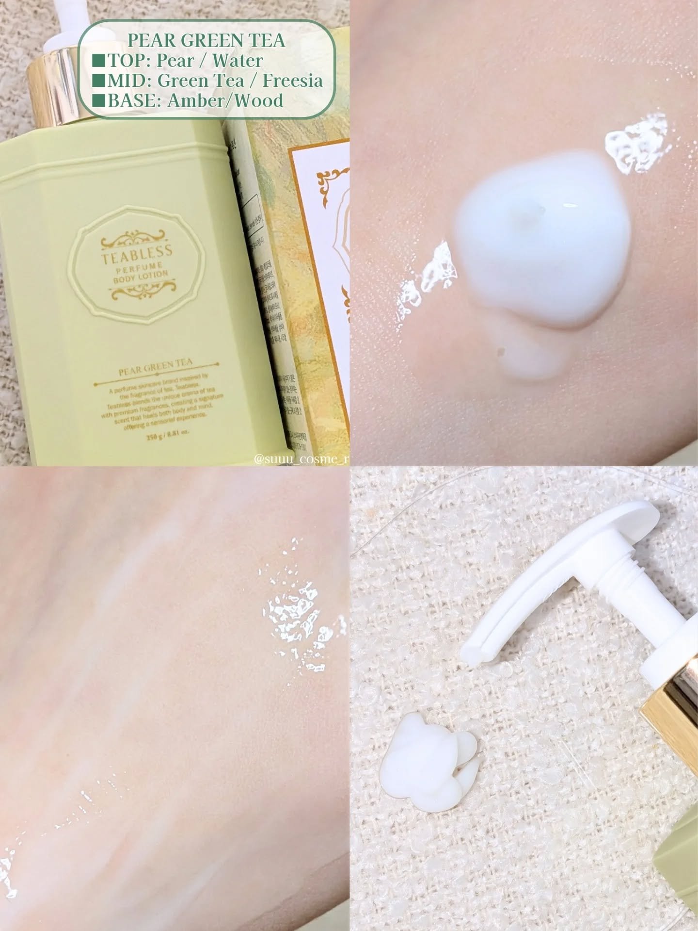 【TEABLESS】《ペアーグリーンティーティーパフュームボディローション》TEABLESSアンバサダーとしての投稿です🤍お部屋に置いておきたくなる、インテリアみたいなボトルデザイン🕊️✨乾燥が気になったタイミングでさっと使えて、ベタつきにく...