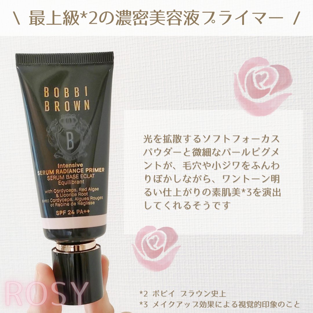 ボビイブラウンから商品提供を頂きました。ボビイブラウンインテンシブセラムラディアンスプライマーSPF24(PA++)ロージーSNSから火が付いた最上級*1の濃密美容液プライマーを使ってみたよ✨️早くもベスコスを多数受賞*2したのだそう!美容液...
