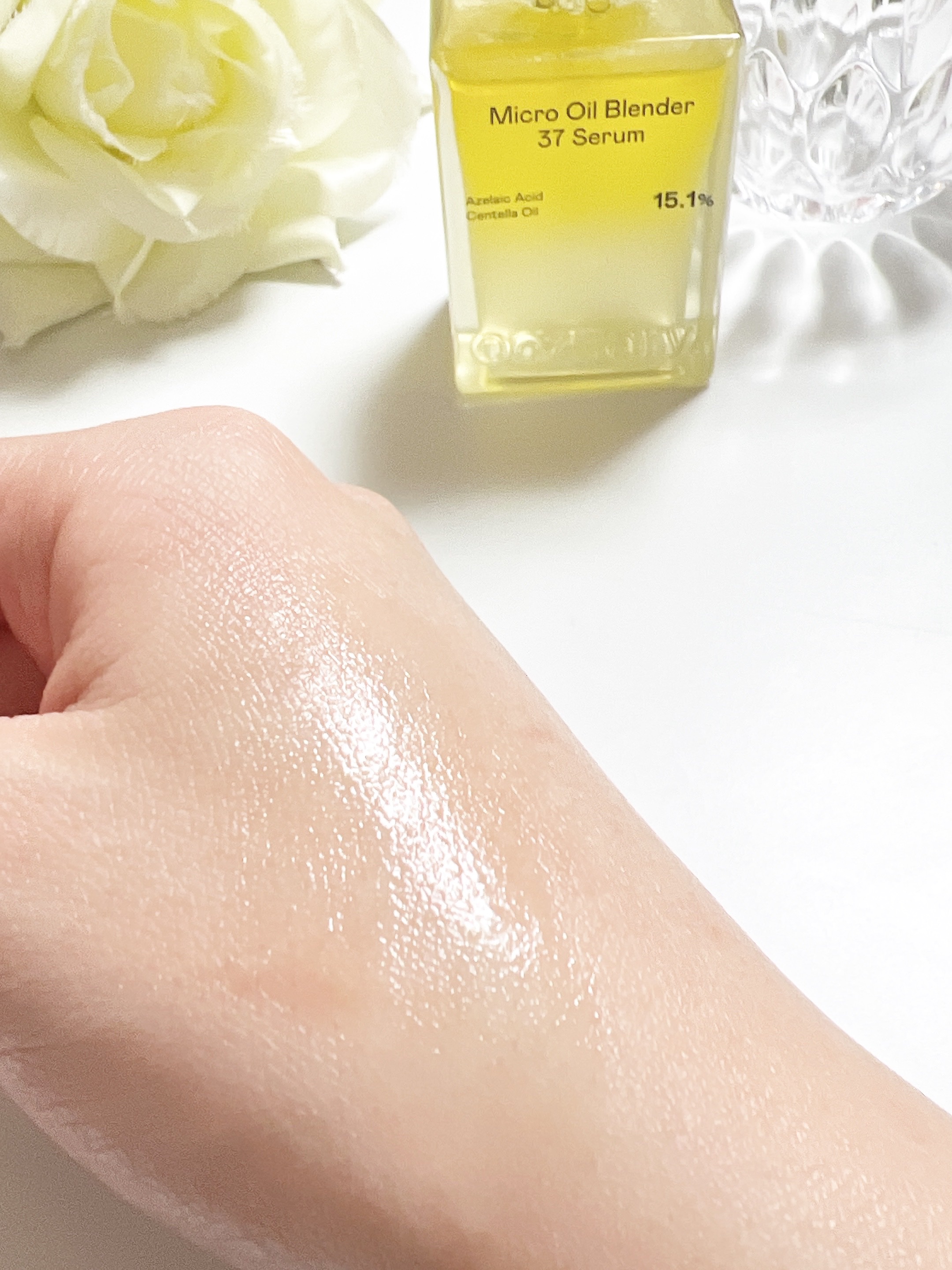 | 少しとろみがあるけど肌に出すとすーっと垂落ちてくるくらいのゆるめのテクスチャーで、のびが良い! | 詳細を見る | ||