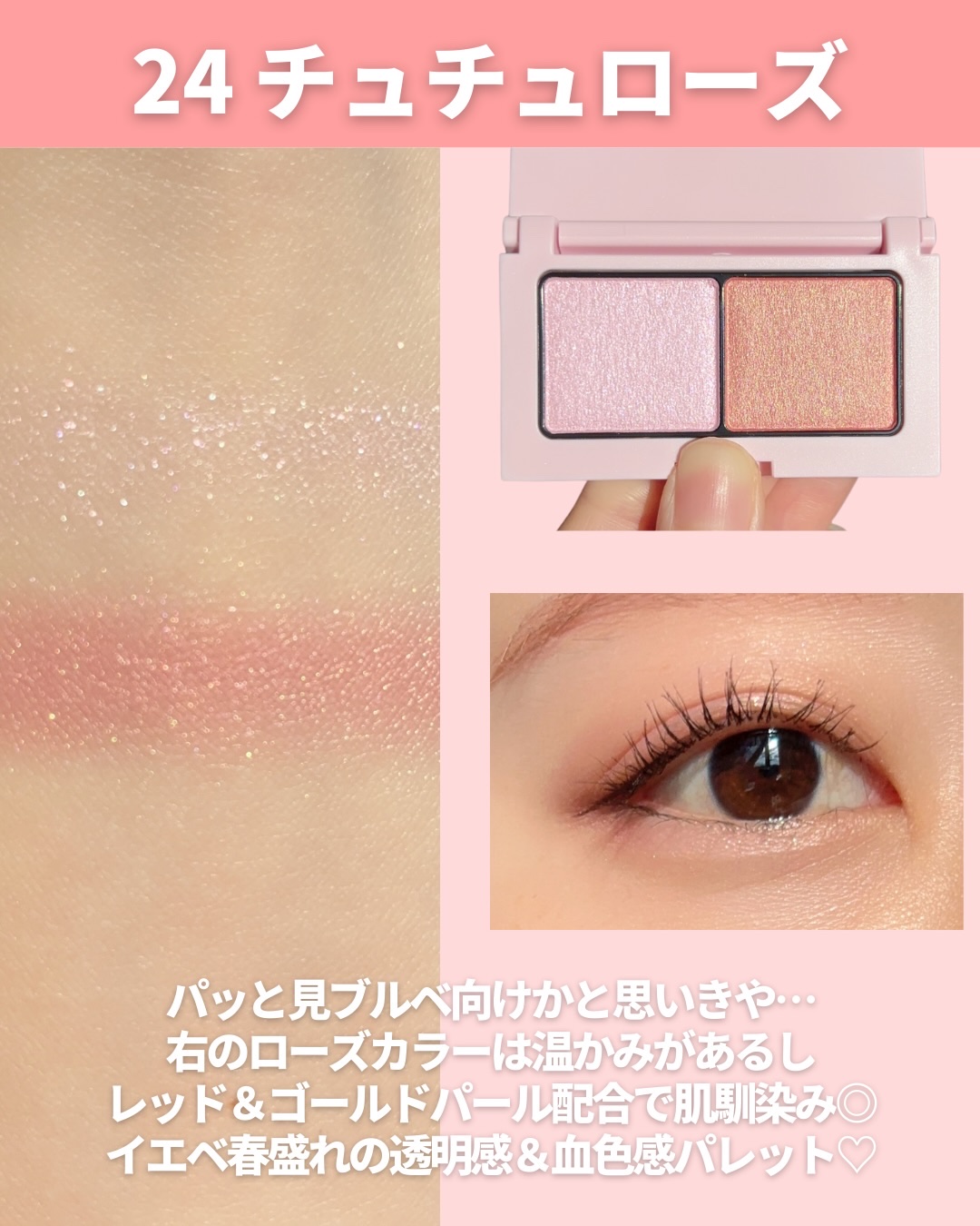 ルナソルのピンクはラメ感控えめなのでオフィスメイクにおすすめ🙆🏻♀️✨ CHANELはかなり万能だと思っていて、柔らかく仕上げればイエベ春の私ももちろんハマるし✨ ブランドごとにもちろん特徴がありますし、ピンクといってもパレットによって仕上がりはさまざま!
