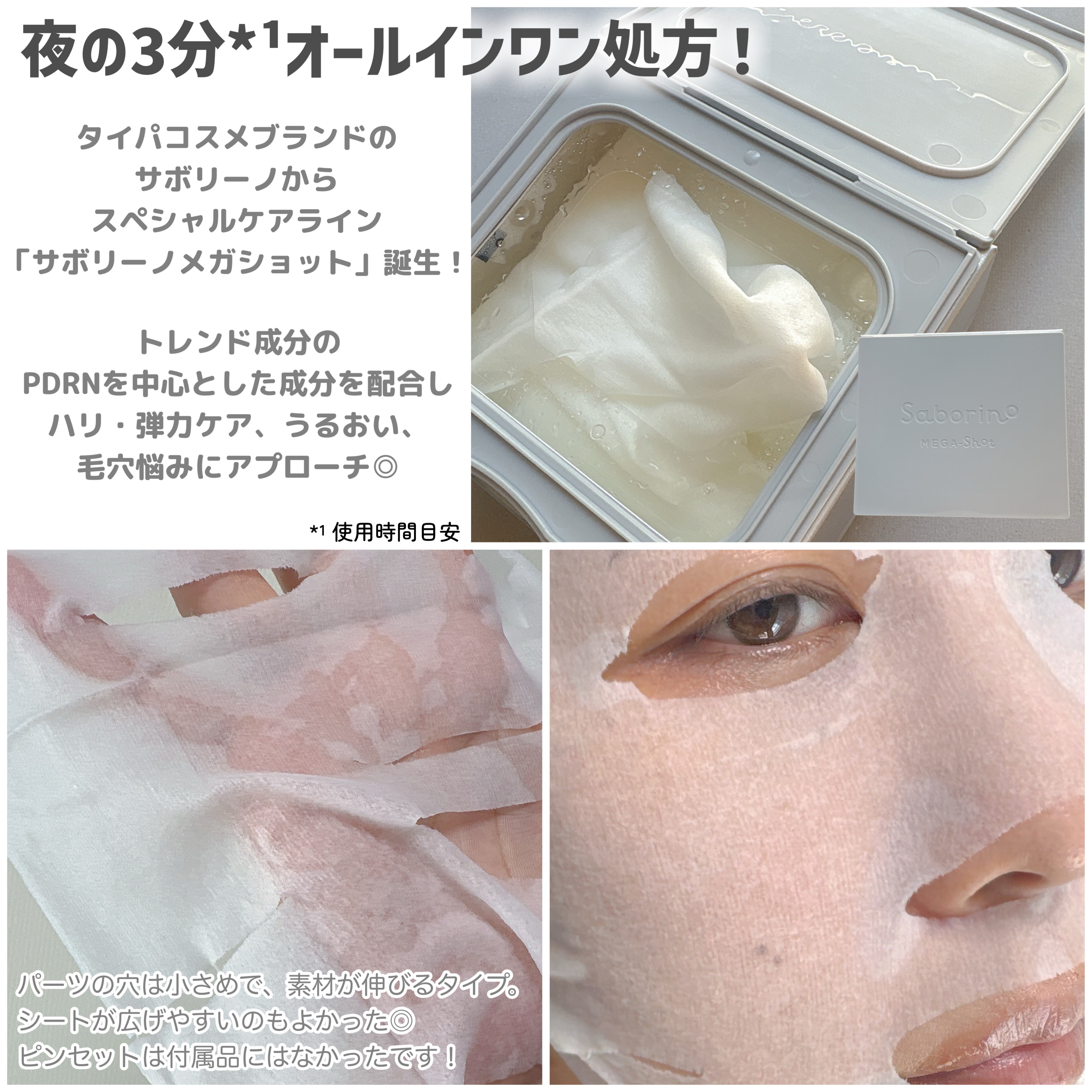 #PR#モニター#サボリーノメガショット夜用白玉タイトニングマスクV#コスメルポ本音レビューサボリーノメガショット夜用白玉タイトニングマスクVミッドナイトグリーンの香りふんわりしたやわらかいシート肌にぴたっと密着してくれた!もっちりした肌触り...