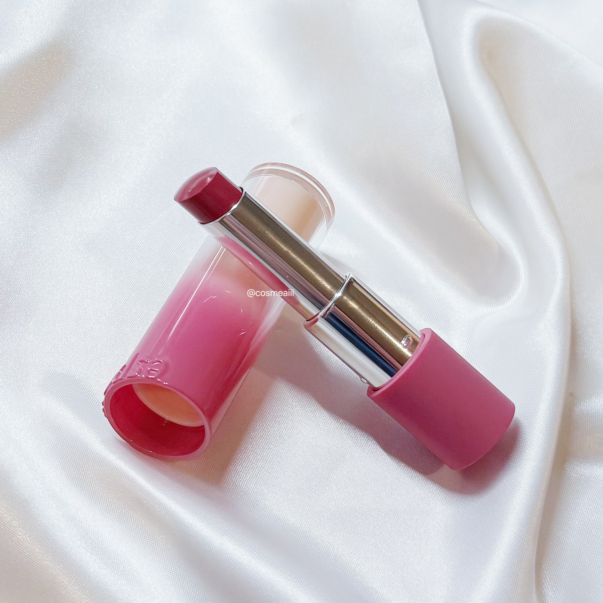 白いパケで開けるところがゴールデンピンクになって、 まるでデパコスみたいな質感🥺💕💕💕 ツヤタイプ 塗ってしばらく置いたら膜ができてツヤも色持ちもずっとキレイに残る 色持ち良いです。ツヤ無くなっても色がそのままキレイに残る 匂いはお花の香りです。 保湿力はかなり高いと思う◎