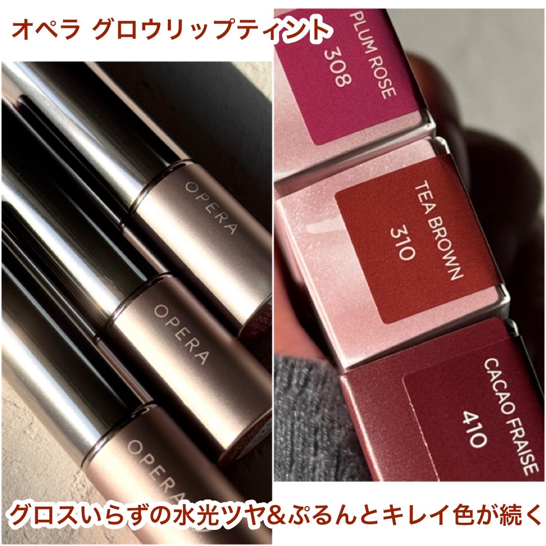 .オペラのティントのバレンタイン限定色410カカオフレイズはピンクラメが入ったチョコレートブラウン🍫🍓フリーズドライのいちごが散りばめられたチョコみたいでかわいすぎませんか…!オペラのリップってかわいらしい感じの色が多いイメージだったけどこれ...
