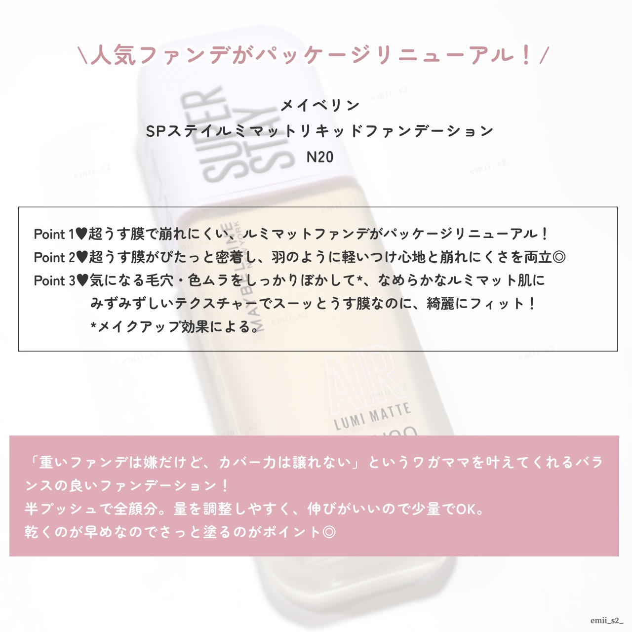 LIPSさん通してMAYBELLINENEWYORKさんからSPステイルミマットリキッドファンデーション頂きました🫧ありがとうございます!MAYBELLINENEWYORKSPステイルミマットリキッドファンデーションN20 ¥2,992🦋うす...
