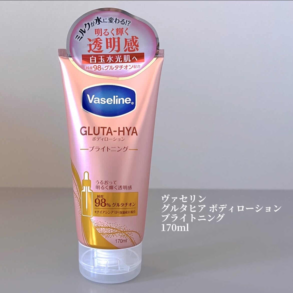 Vaseline🤍グルタヒアボディローションブライトニング純度98%グルタチオンと4種のヒアルロン酸(*1)、ナイアシンアミドまで配合されたボディローションミルクのような質感が肌に馴染ませると水ようにみずみずしいテクスチャーに変化🪄✨ベタつか...