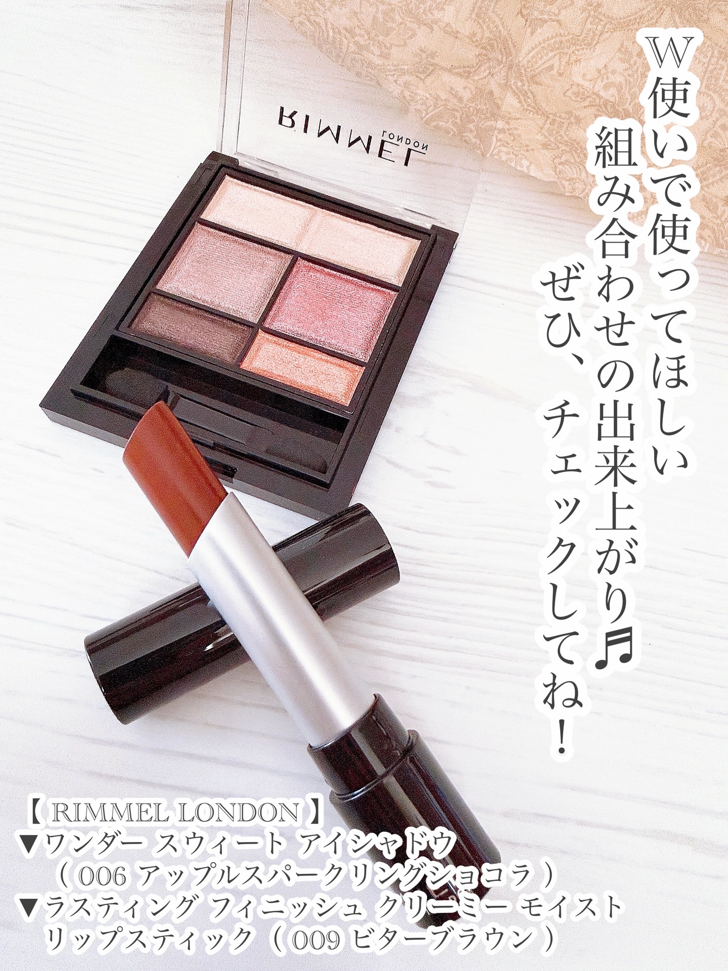 リンメル公式アンバサダーとして商品提供いただいています。【リンメル】ワンダースウィートアイシャドウ006アップルスパークリングショコラ(2024年1月12日発売)ラスティングフィニッシュクリーミィモイストリップスティック009ビターブラウン(...