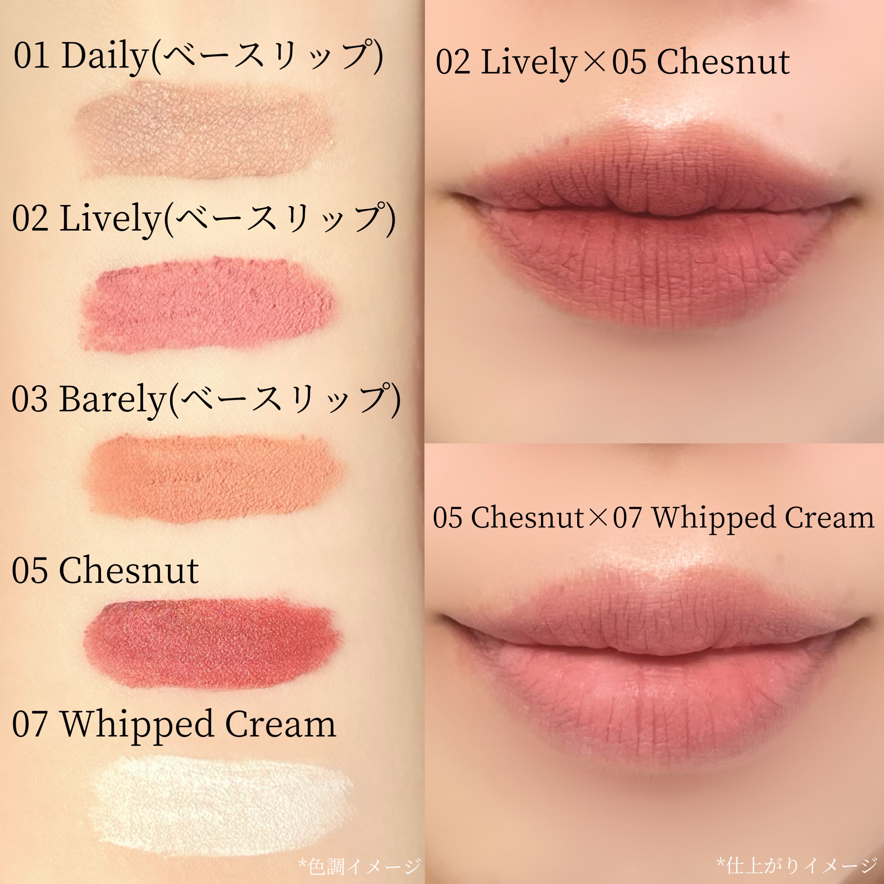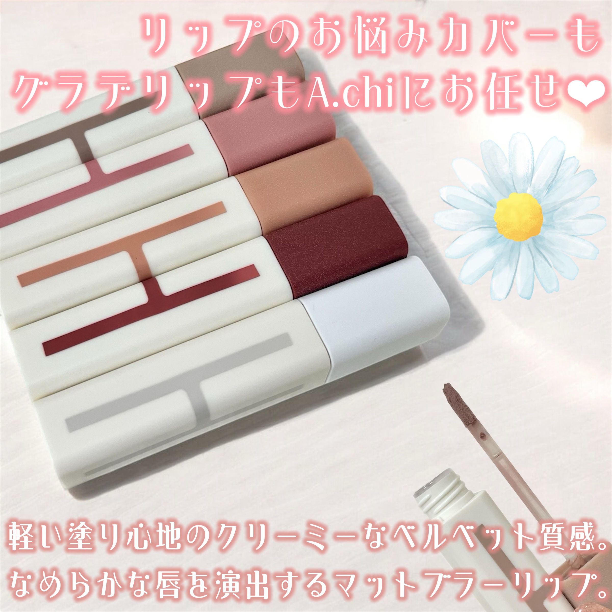 A.chiのリップ新色がまさかの「白」だった!!!✅01Dailyピンクが一滴入ったグレーベースリップ✅02Livelyミドルトーンの白みの多いピンクブルべのベースリップ✅03Barelyミドルトーンの白みの多いベージュイエべのベースリップ✅...