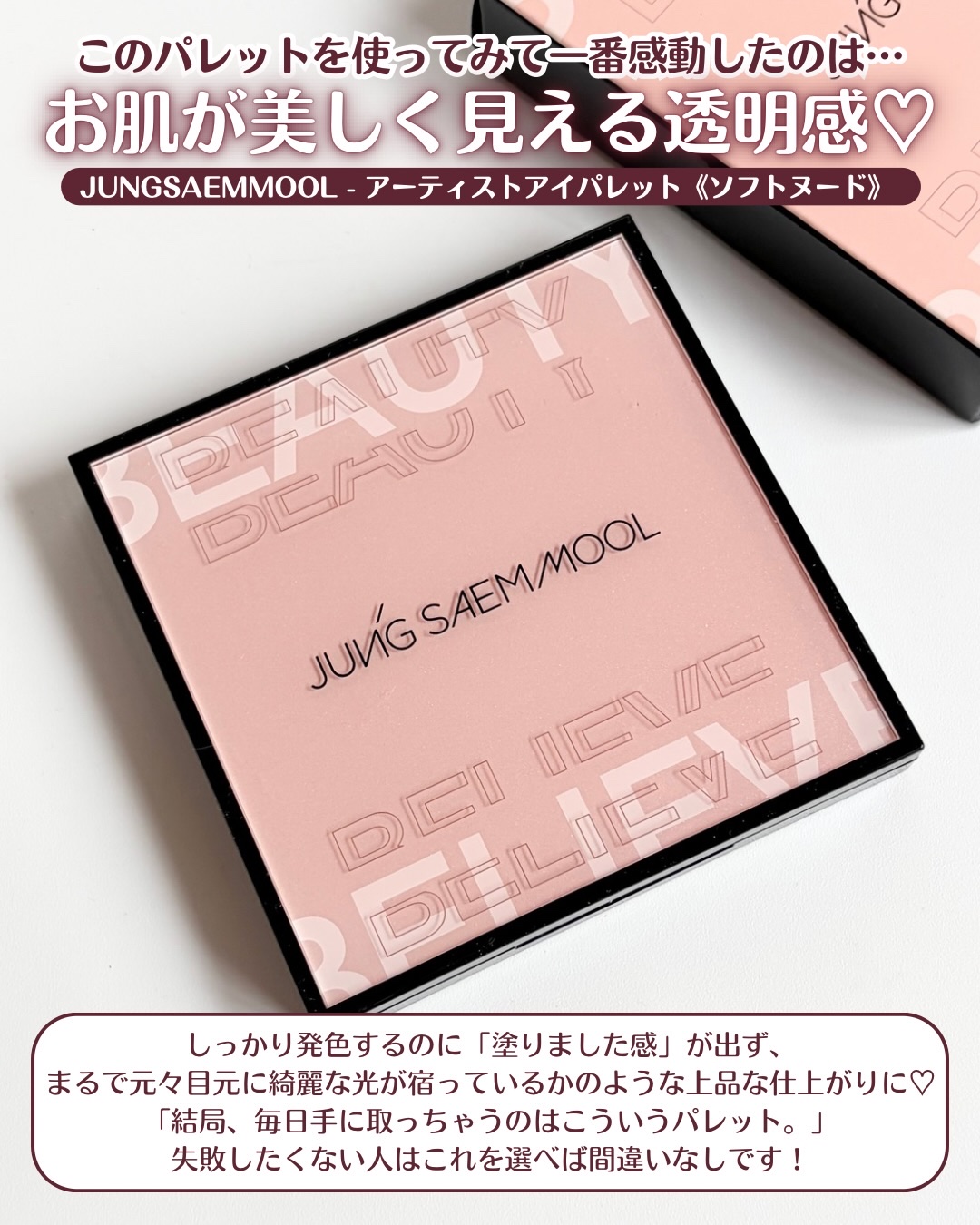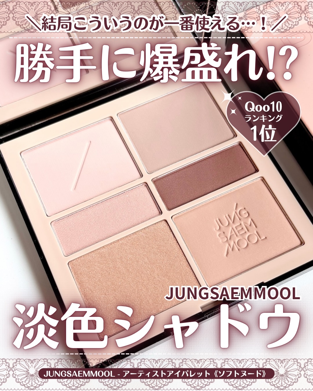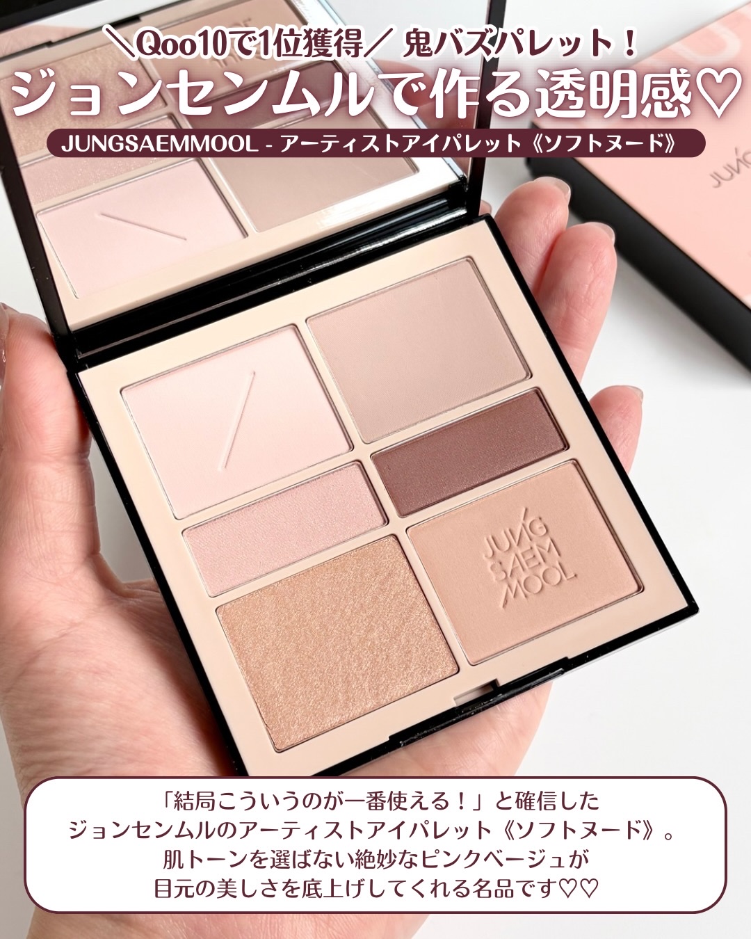 JUNGSAEMMOOLアーティストアイパレット〈ソフトヌード〉\Qoo10ランキング1位の鬼バズアイシャドウ💗/ずっと気になってたジョンセンムルの名品パレット…✨実際に使ってみて、まず感じたのは粉質のなめらかさと肌なじみの良さ🫧ひと塗りでピ...