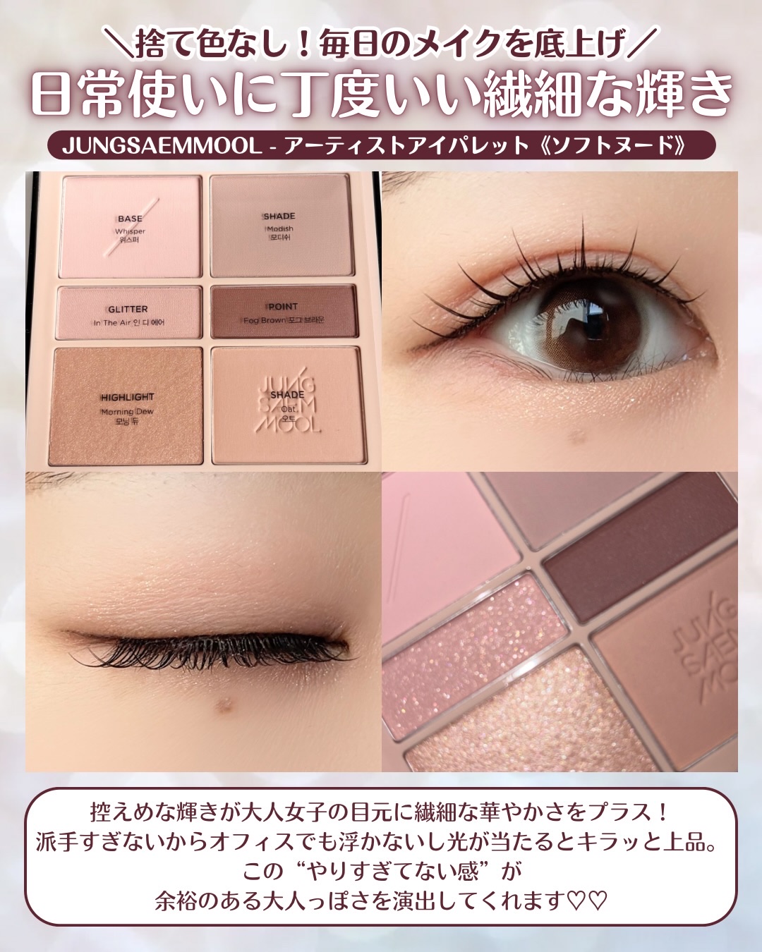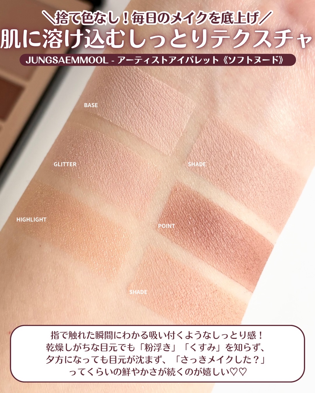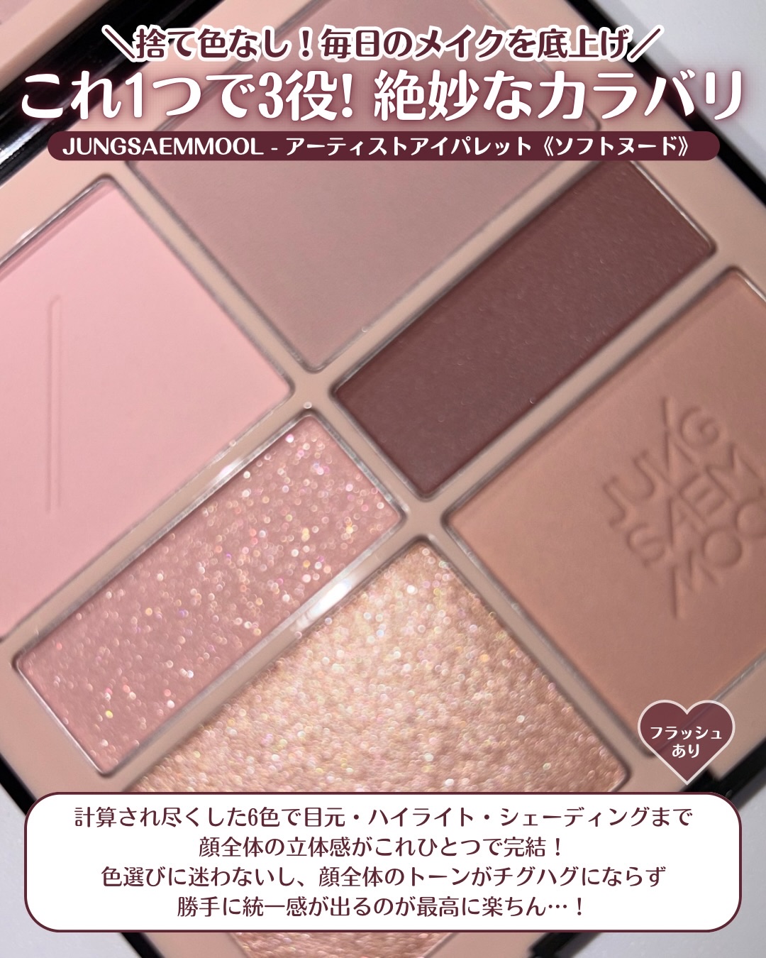 JUNGSAEMMOOLアーティストアイパレット〈ソフトヌード〉\Qoo10ランキング1位の鬼バズアイシャドウ💗/ずっと気になってたジョンセンムルの名品パレット…✨実際に使ってみて、まず感じたのは粉質のなめらかさと肌なじみの良さ🫧ひと塗りでピ...