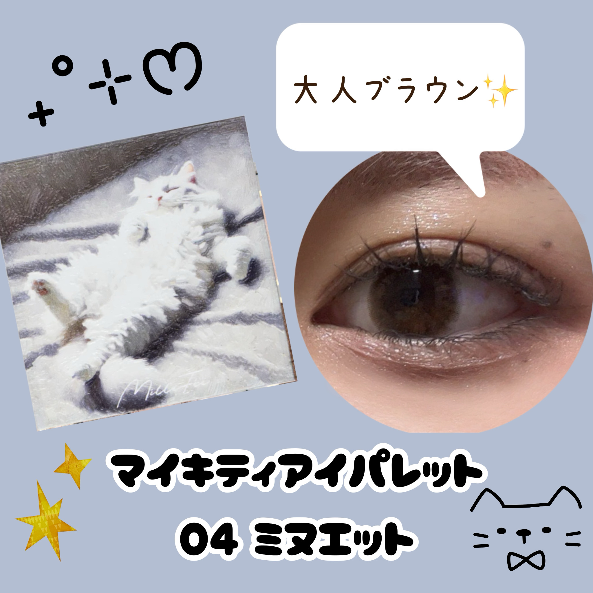 本日のアイシャドウ♡大好きな#MilleFee#マイキティアイパレット05サイベリアン猫チャンが可愛すぎるアイシャドウ✨もちろん、カラーも可愛くて発色もちょうどよくて、ラメもキレイで…❤️全部が好きなMilleFée!!また、このパケが使いや...