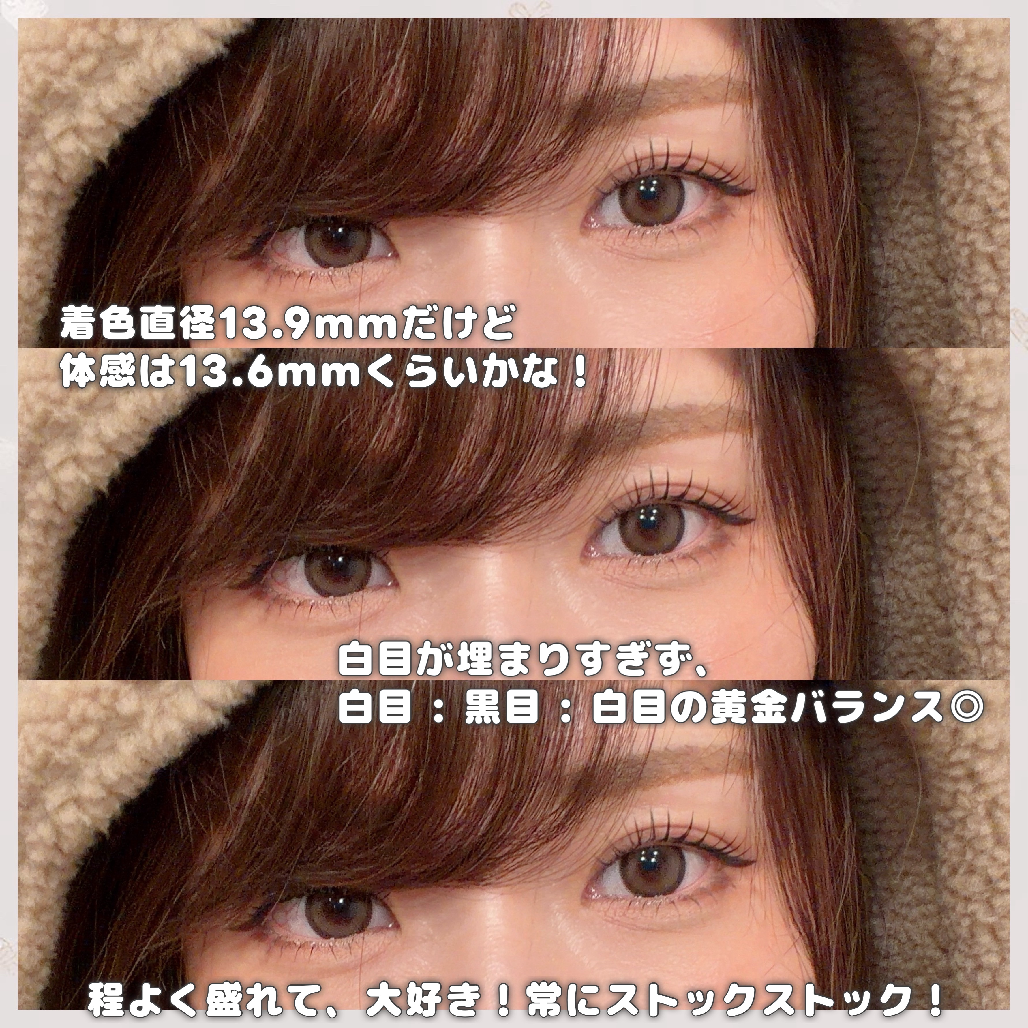 Flurry by colors#フルーリーB C : 8.6mm / 含水率 : 58.0%(D I A ・着色直径は各カラーに記載)ワンデー1箱10枚入 / 全10色 🐩 #くりくりプードル 🆕( DIA :15.0mm / 着色直径 : 14.4mm )【明日花キララちゃん2ndプロデュースレンズ】フルーリーでも特に人気のリングフチのブラウンver.!太め・濃いめのぼかしフチ✖️やや赤み寄りブラウン。うるうるな赤茶目の愛されプードルeyeに💓 🦭 #あざとあざらし 🆕( DIA :14.5mm / 着色直径 : 14.0mm )裸眼の色に馴染む透明感のあるシアーベージュ。ダークブラウンともチョコとも違うあざとくて上品な瞳に🤍