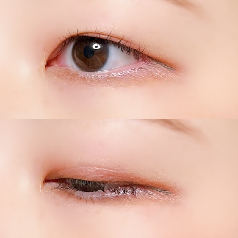 左上のカラーを指でアイホールと鼻横のハイライトとしてのせたあと 左下のカラーを手持ちのブラシで二重幅にのせ 1番下のカラーを手持ちのブラシで目尻に細く入れて締め色として使用しています☺️ 下まぶたに右上のカラーを指でのせて 下まぶたの目尻側に右下のカラーを手持ちのブラシでのせています🙌 右上のカラーを上まぶたの中央に指でのせることもあります! 全部にパールやラメが入っていて 右上のカラーは青ラメが入っています! 私が1番気に入っているカラーは左上のカラーです🫣 少しぷにぷにしたような質感をしていますが、肌にのせるとサラッとします! シマーな質感でラメというよりパールを感じます🙌 絶妙なピンク色でハイライトに使ってもとってもかわいいです😍 これをアイホールにのせると平面的な私のまぶたでも立体的に見えます🥹 私は暗い色があまり得意ではありませんが、がっつり発色する訳ではないので使いやすいと思いました! ただ私のベースメイクとの相性がよくないのか、 左上のカラーをのせるとたまにモロモロが出てくることがあります😂 相性には気をつけた方がいいかもしれません!