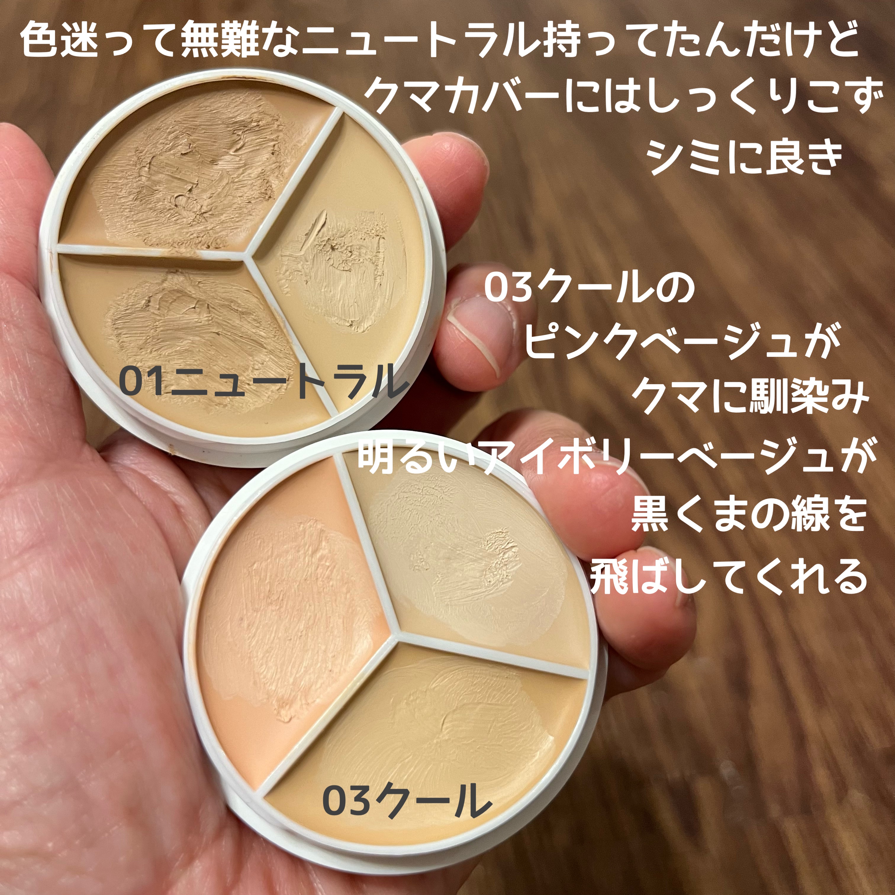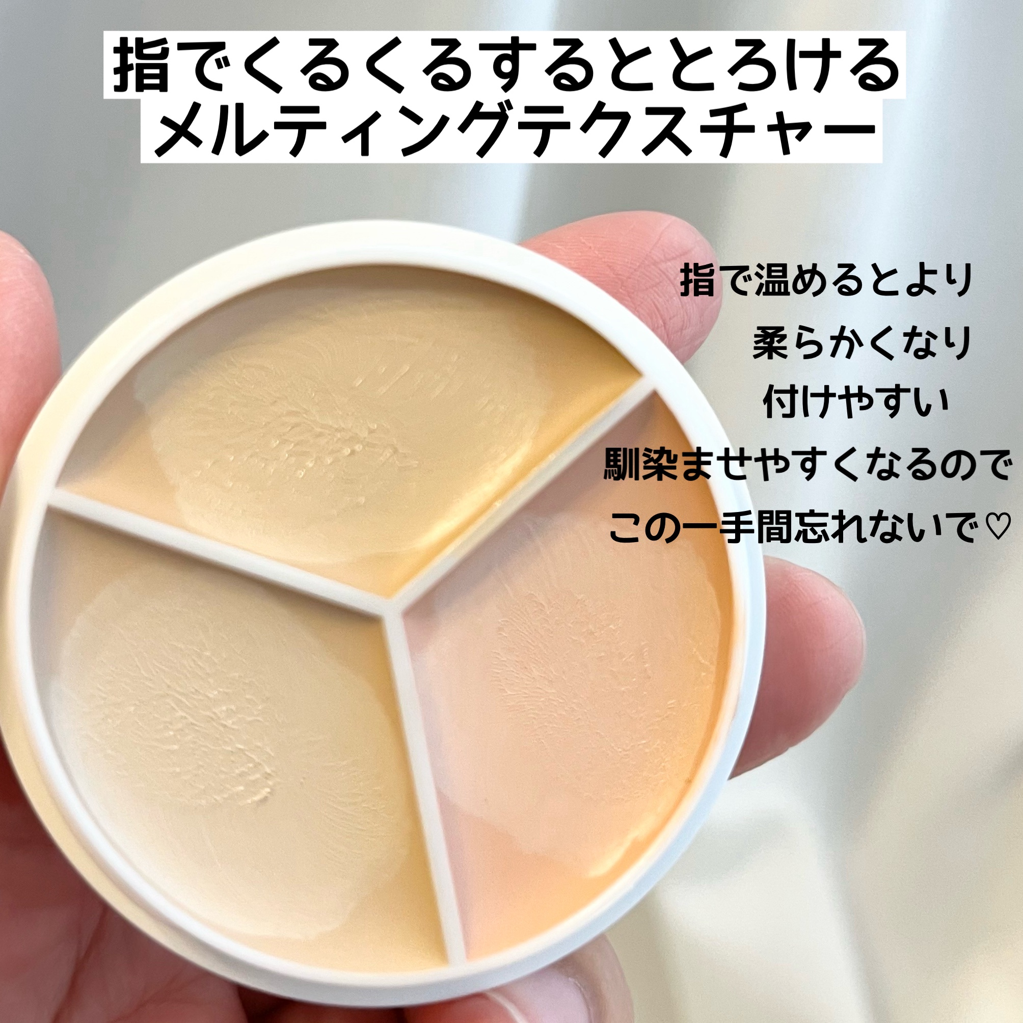 - クマからニキビ跡、シミまでこれ1つでカバー。 3色タイプだからこそ、気になるところや肌色を選ばずにご使用いただけます。 リキッドタイプを圧縮した高濃度バームのため高カバー高密着*¹を実現。 コンシーラーだけでなくコントアとしても使用可能です。 *1メーカー比