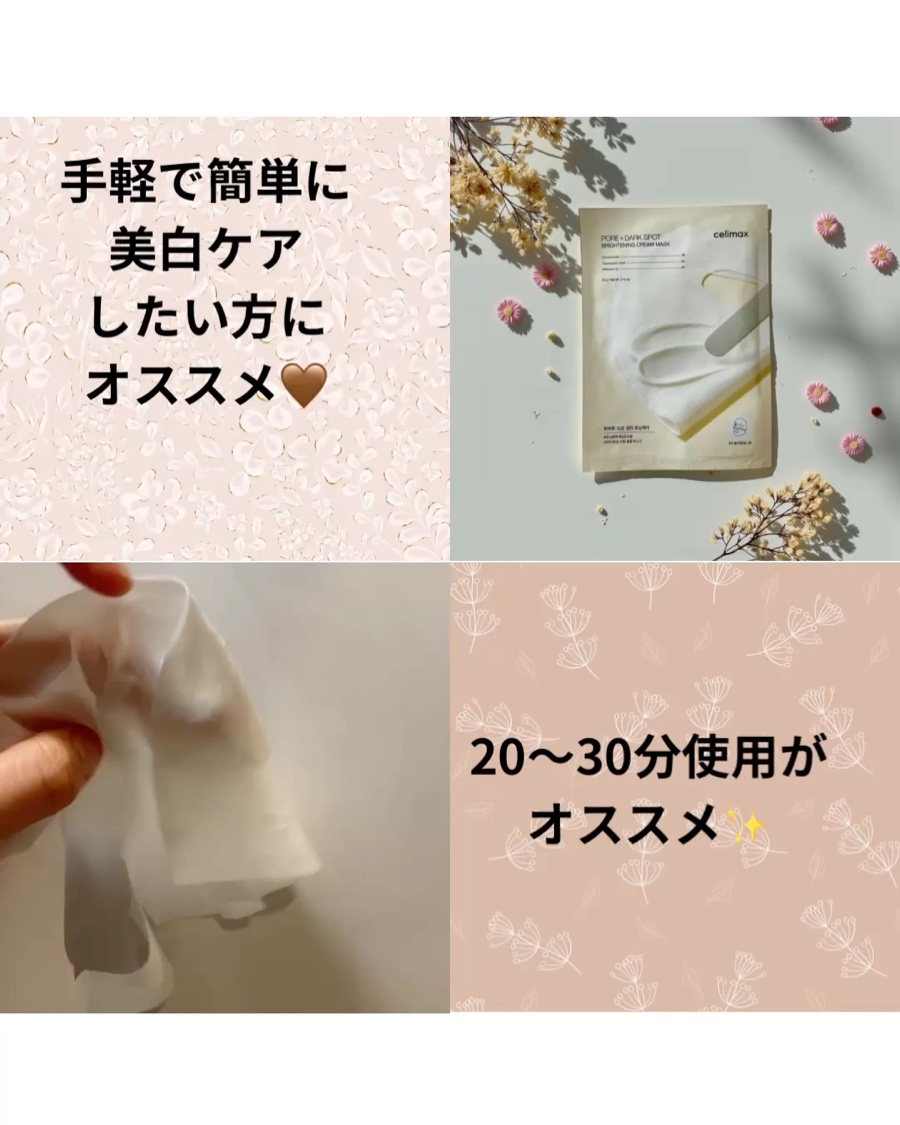 新感覚!特殊クリームラッピング生地のクリームラッピングマスクを紹介します🎭celimax(セリマックス)ポアブライトニングクリームラッピングマスク20g/4枚特殊コーティングラッピングシートで内側にのみクリームを塗布していて表面にクリームが付...