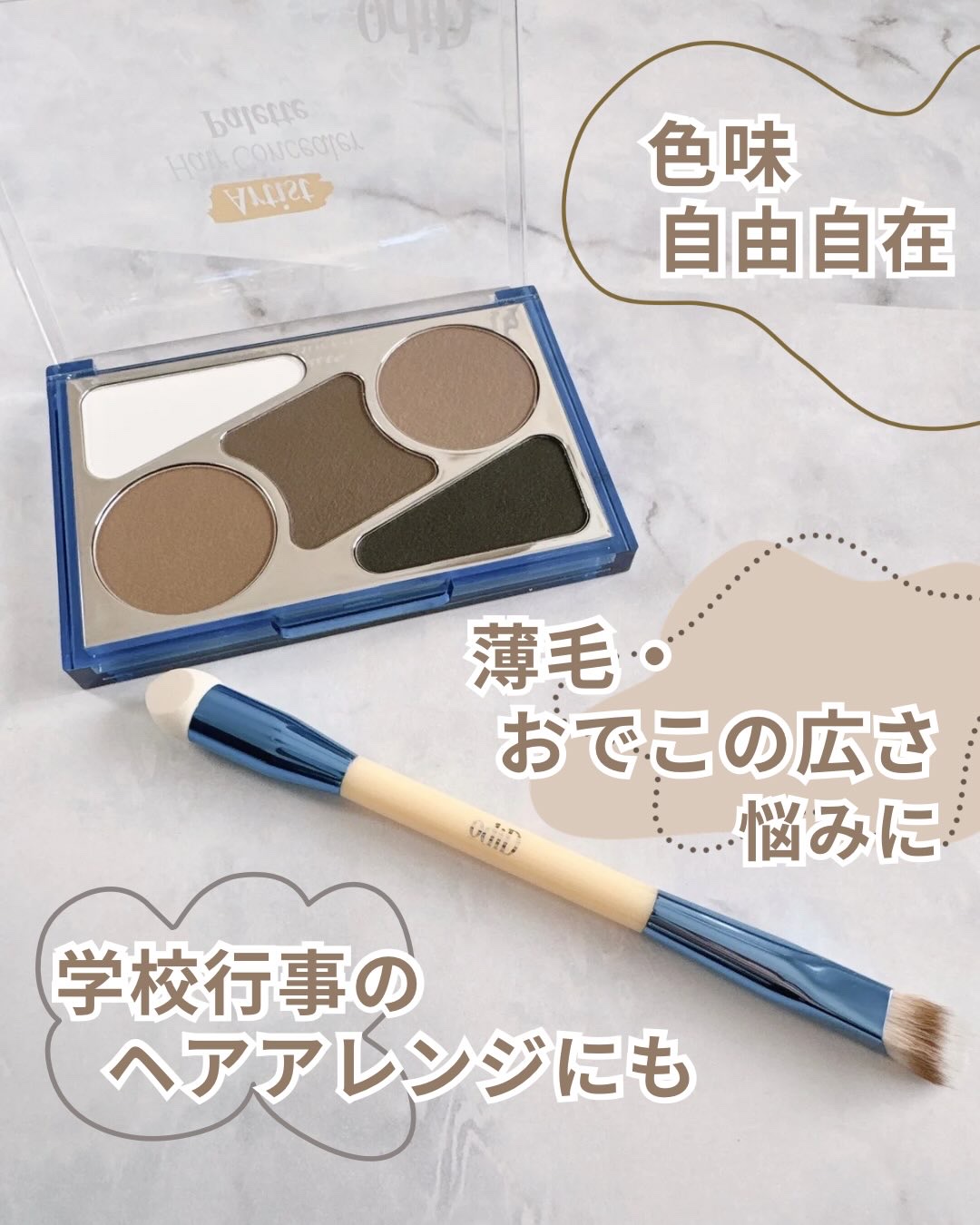 新感覚ヘアコンシーラーオーディッドアーティストラインアーティストヘアコンシーラーパレット&アーティストデュアルブラシ使ってみた♥️ヘア専用の高発色コンシーラーパレットで気になる部分を自然にカバー。オイル配合パウダーで粉飛びしにくく、頭皮にしっ...