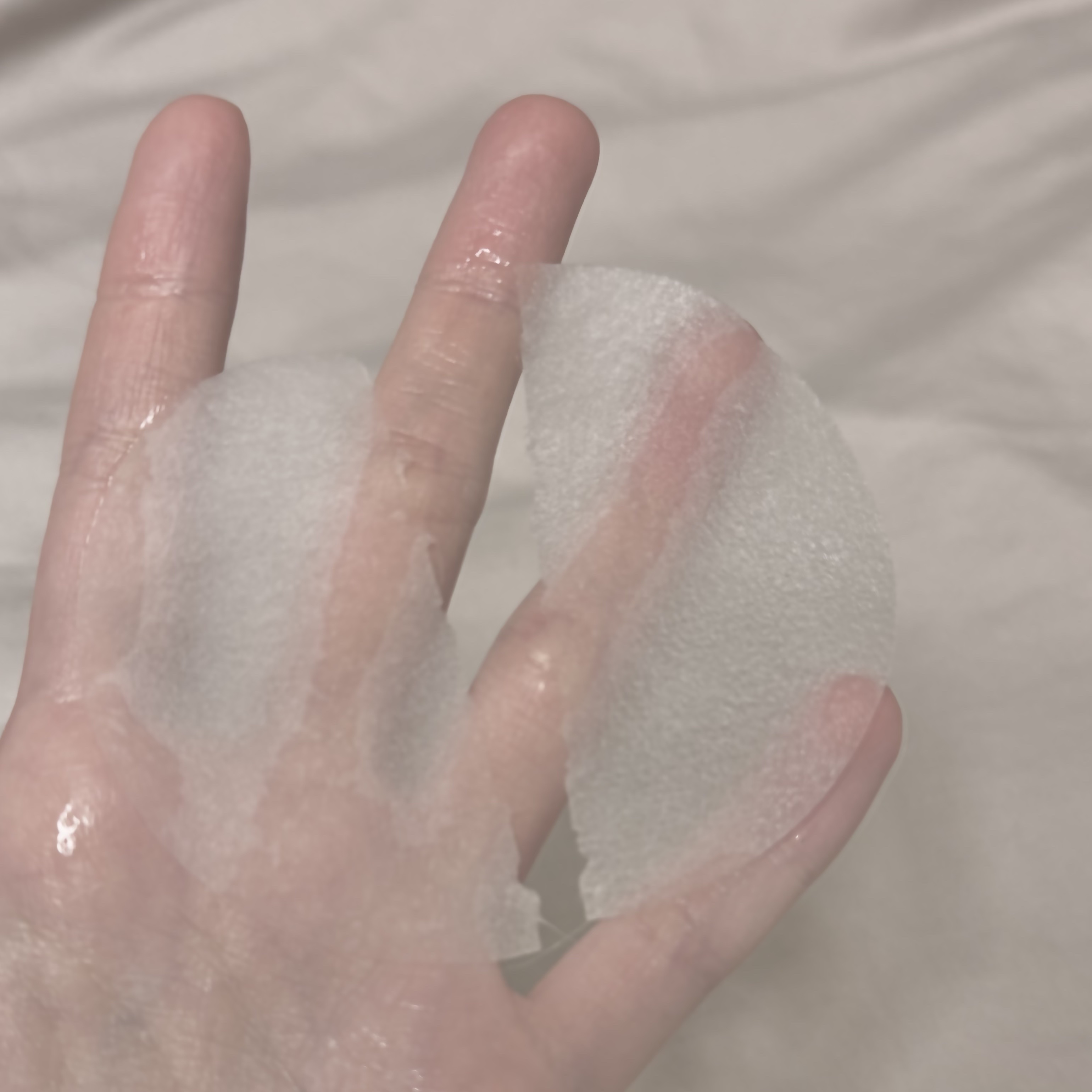 *VTPDRN+デイリーマスク*○質感・厚さ写真の通り個包装タイプなどに比べると若干薄め、もちふわコットンタイプではなく繊維質な感じ¨̮⃝水分寄りの美容成分がたっぷりなので、割と10分前後放置していても保湿されっぱなしで◎スキンケアの導入、お...