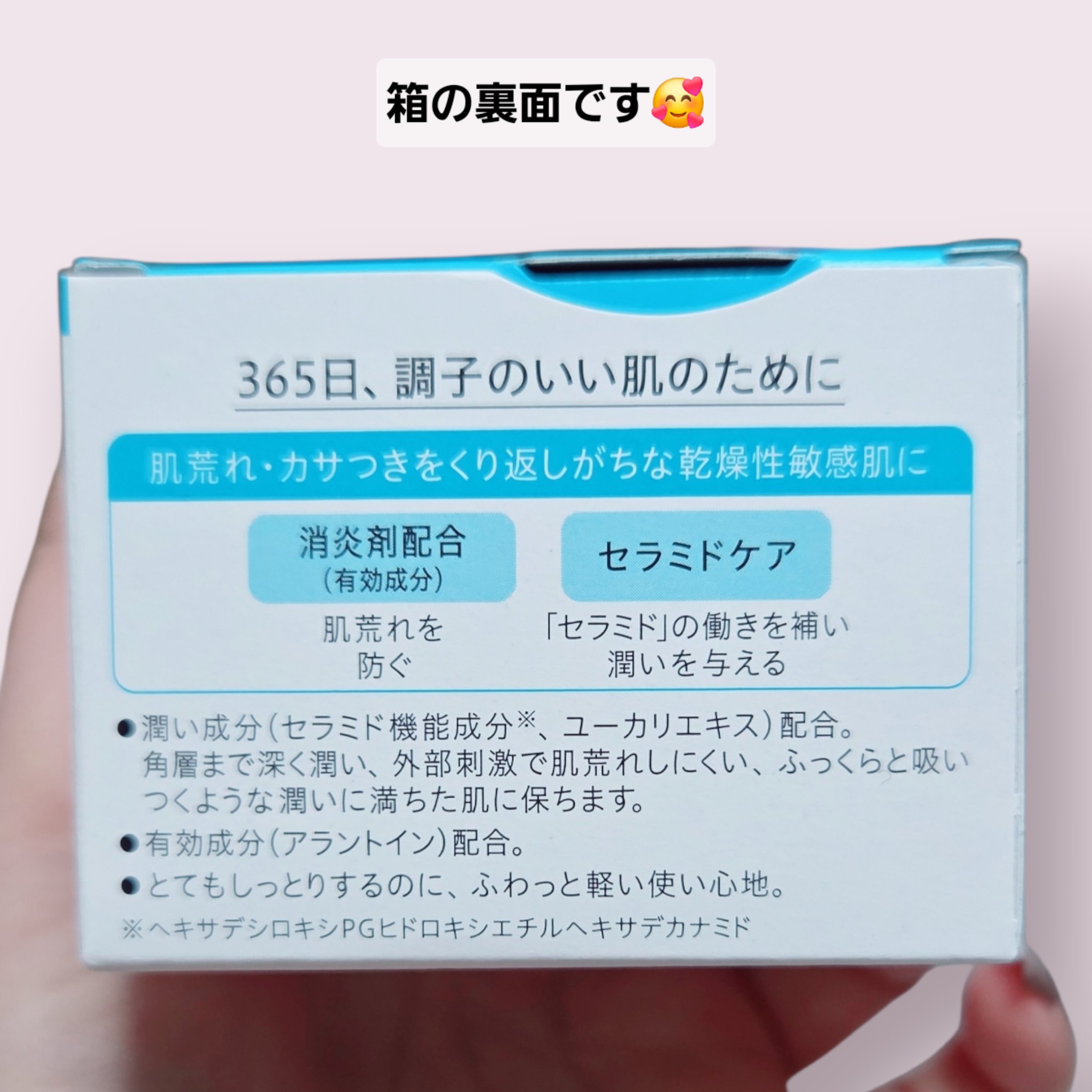 - <40g> 有効成分 アラントイン その他の成分 水、グリセリン、ヘキサデシロキシPGヒドロキシエチルヘキサデカナミド、トリシロキサン、ジメチコン、α-オレフィンオリゴマー、POE・ジメチコン共重合体、ユーカリエキス、硫酸Mg、BG、イソステアリルグリセリルエーテル、コハク酸、水酸化ナトリウム液、パラベン <70g> 有効成分 アラントイン その他の成分 水、グリセリン、ヘキサデシロキシPGヒドロキシエチルヘキサデカナミド、トリシロキサン、ジメチコン、α-オレフィンオリゴマー、POE・ジメチコン共重合体、ユーカリエキス、硫酸Mg、BG、イソステアリルグリセリルエーテル、コハク酸、水酸化ナトリウム液、パラベン <詰替用 36g> 有効成分 アラントイン その他の成分 水、グリセリン、ヘキサデシロキシPGヒドロキシエチルヘキサデカナミド、トリシロキサン、ジメチコン、α-オレフィンオリゴマー、POE・ジメチコン共重合体、ユーカリエキス、硫酸Mg、BG、イソステアリルグリセリルエーテル、コハク酸、水酸化ナトリウム液、パラベン <トライアル4.5g> 有効成分 アラントイン その他の成分 水、グリセリン、ヘキサデシロキシPGヒドロキシエチルヘキサデカナミド、トリシロキサン、ジメチコン、α-オレフィンオリゴマー、POE・ジメチコン共重合体、ユーカリエキス、硫酸Mg、BG、イソステアリルグリセリルエーテル、コハク酸、水酸化ナトリウム液、パラベン