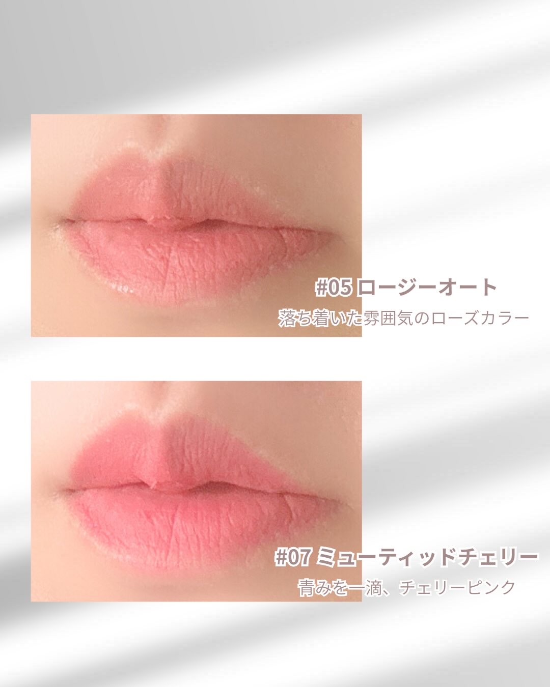 - ふんわりとしたベルベットのような質感で、ひと塗りでしっとり密着。 軽やかなテクスチャーなのに発色は鮮やかで、縦ジワも目立たず、なめらかな仕上がりを叶えます。