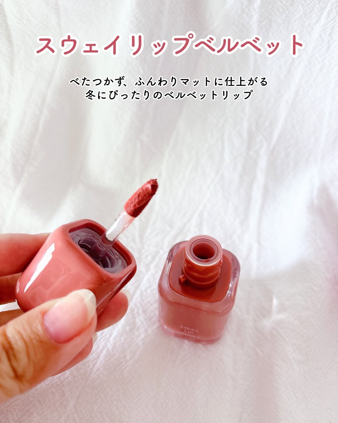 べたつかずふんわりとしたマット質感で、冬のメイクにぴったりのベルベットリップtoocoolforschoolSwayLipVelvetがかわいいすぎた💗❄️マットリップって乾燥が気になるイメージだったんだけど、これはベルベットのようなすべすべ...
