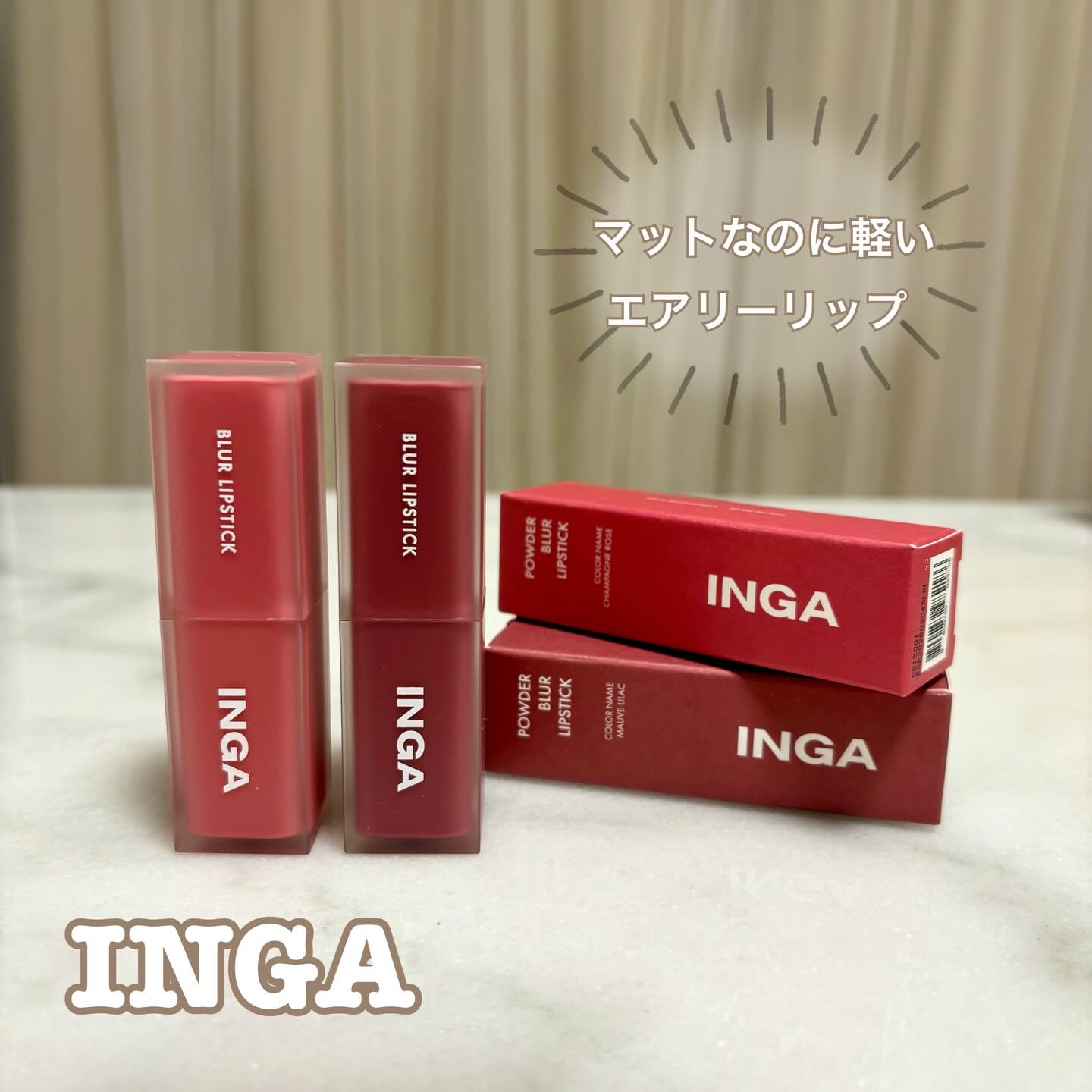 ☑︎PR✽.。.:*・゚✽.。.:*・゚✽.。.:*・゚✽.。.:*・゚INGA🌷パウダーブラーリップスティックCHAMPAGNEROSENUDYVEILY✽.。.:*・゚✽.。.:*・゚✽.。.:*・゚✽.。.:*・゚期間限定で1/25まで...