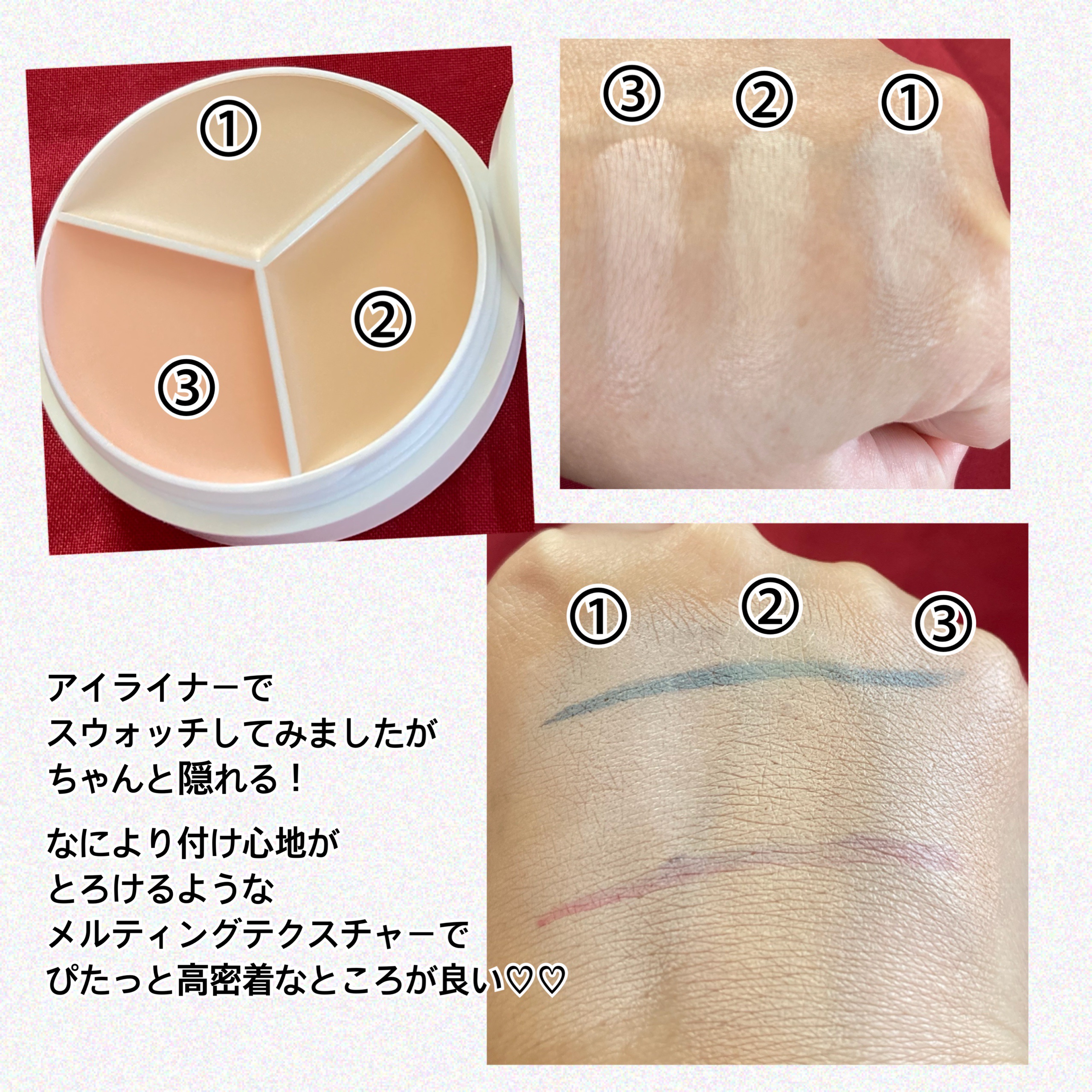 - クマからニキビ跡、シミまでこれ1つでカバー。 3色タイプだからこそ、気になるところや肌色を選ばずにご使用いただけます。 リキッドタイプを圧縮した高濃度バームのため高カバー高密着*¹を実現。 コンシーラーだけでなくコントアとしても使用可能です。 *1メーカー比