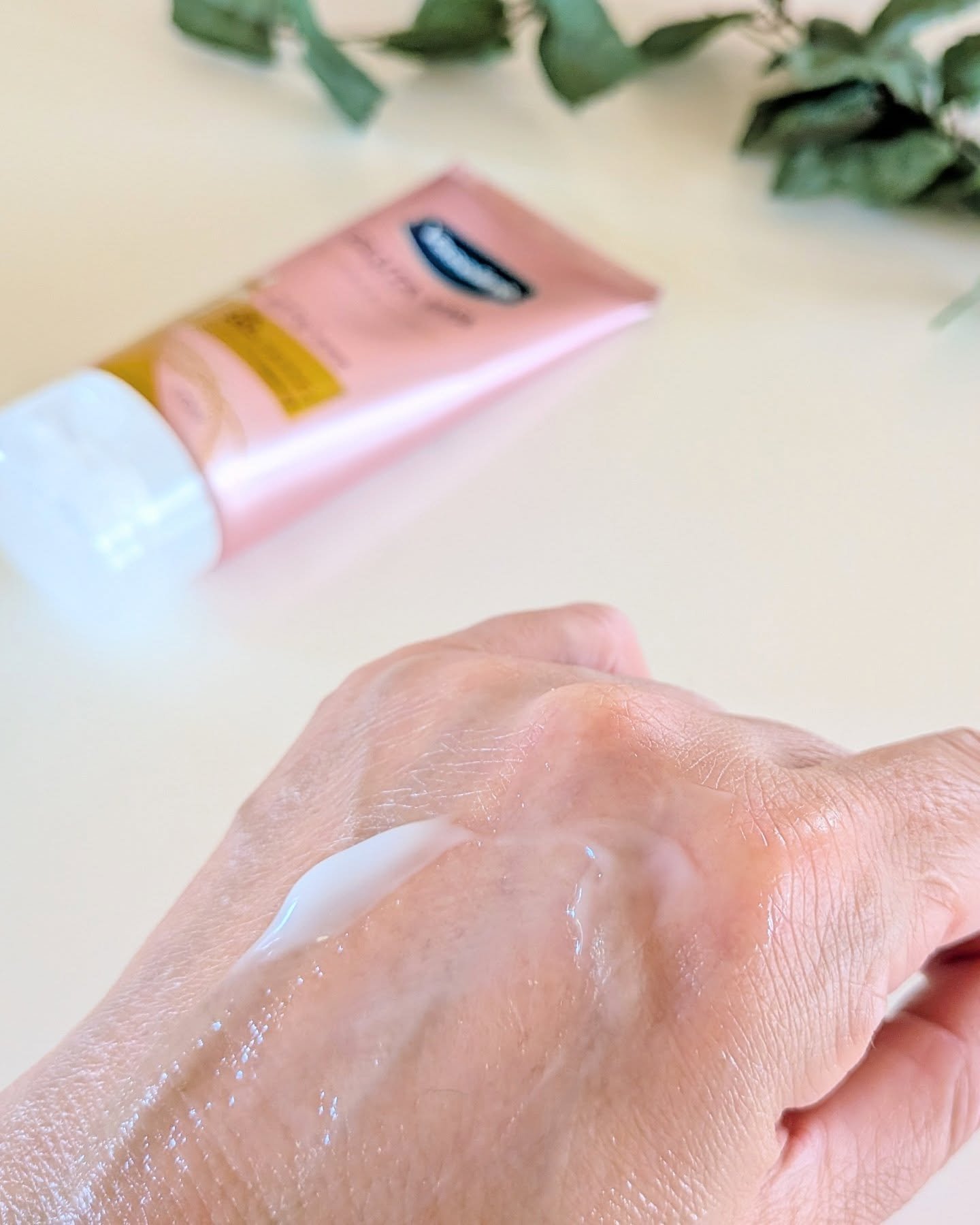 透明でとろみあるテクスチャで肌なじみもよく、伸びもいい。ベタつかないさらっとした使用感です。 1回の塗布で72時間うるおいをキープし、みずみずしい透明感あふれるツヤ肌へ導いてくれるそうです。